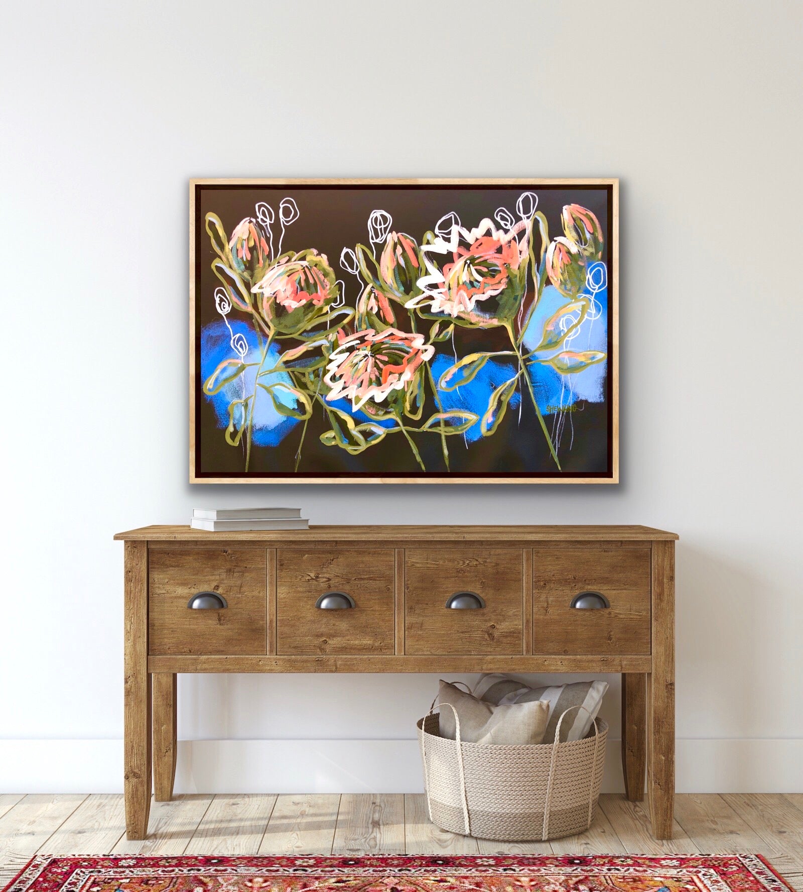 - This artwork would look great framed in an oak timber or black floating frame as shown in the photo (frame is not supplied) I can arrange framing for you, its easy!