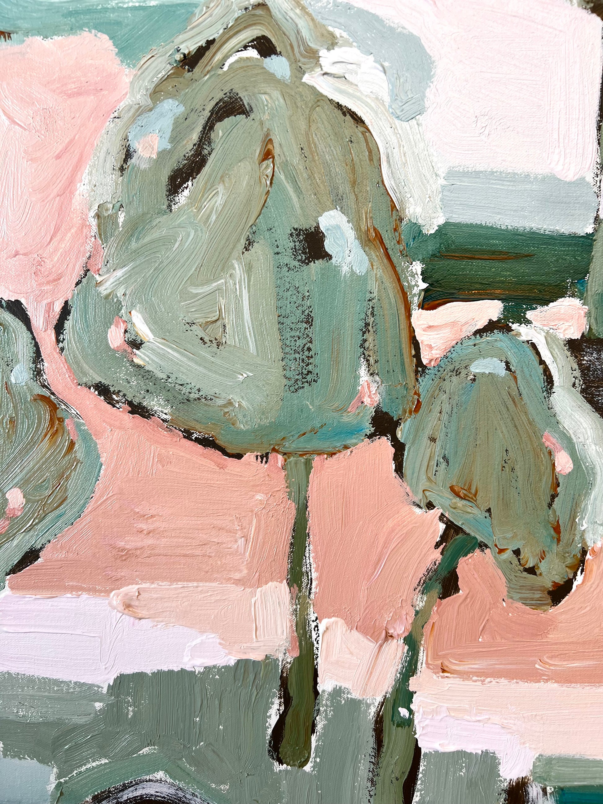 I am obsessed with colour and nature! Outside in the natural environment is where I spend my time sketching the organic forms that surround me. I take them back to my studio where I abstract the beauty and vibrancy of the experience into my paintings. What excites me is creating compositions using a luminous mix of rich colours and texture bringing the outdoors inside feeling happiness from connecting with nature.