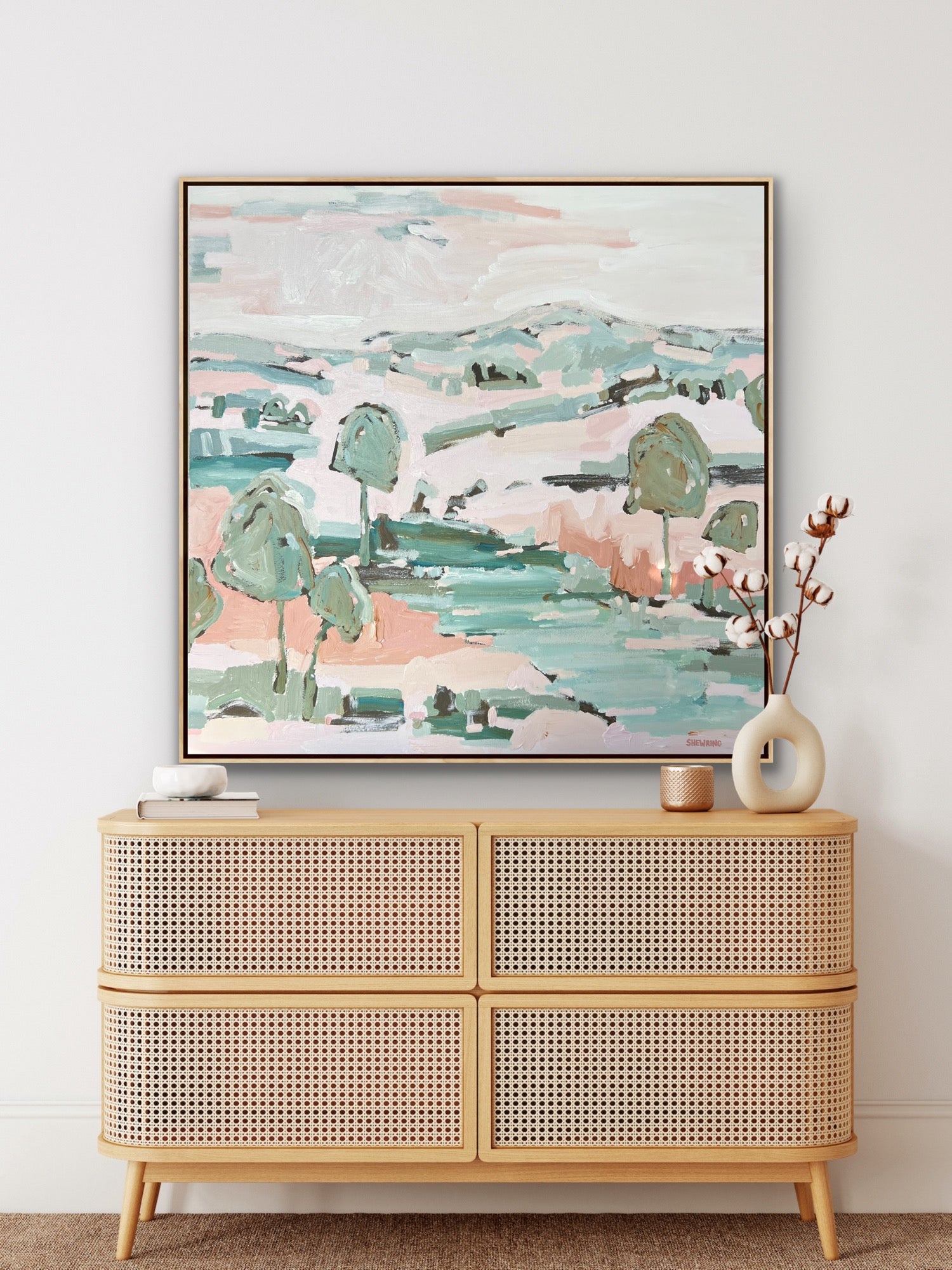 Jen produces stunning on trend paintings and has paintings in the corporate market and in private collections in Australia and overseas. Eight of Jen's artworks were chosen and displayed in 4 homes on the hit TV series 'THE BLOCK' and she was labelled as one of the top 10 Australian Artists To Watch by two major galleries. Her artwork was published in Grand Designs Magazine.