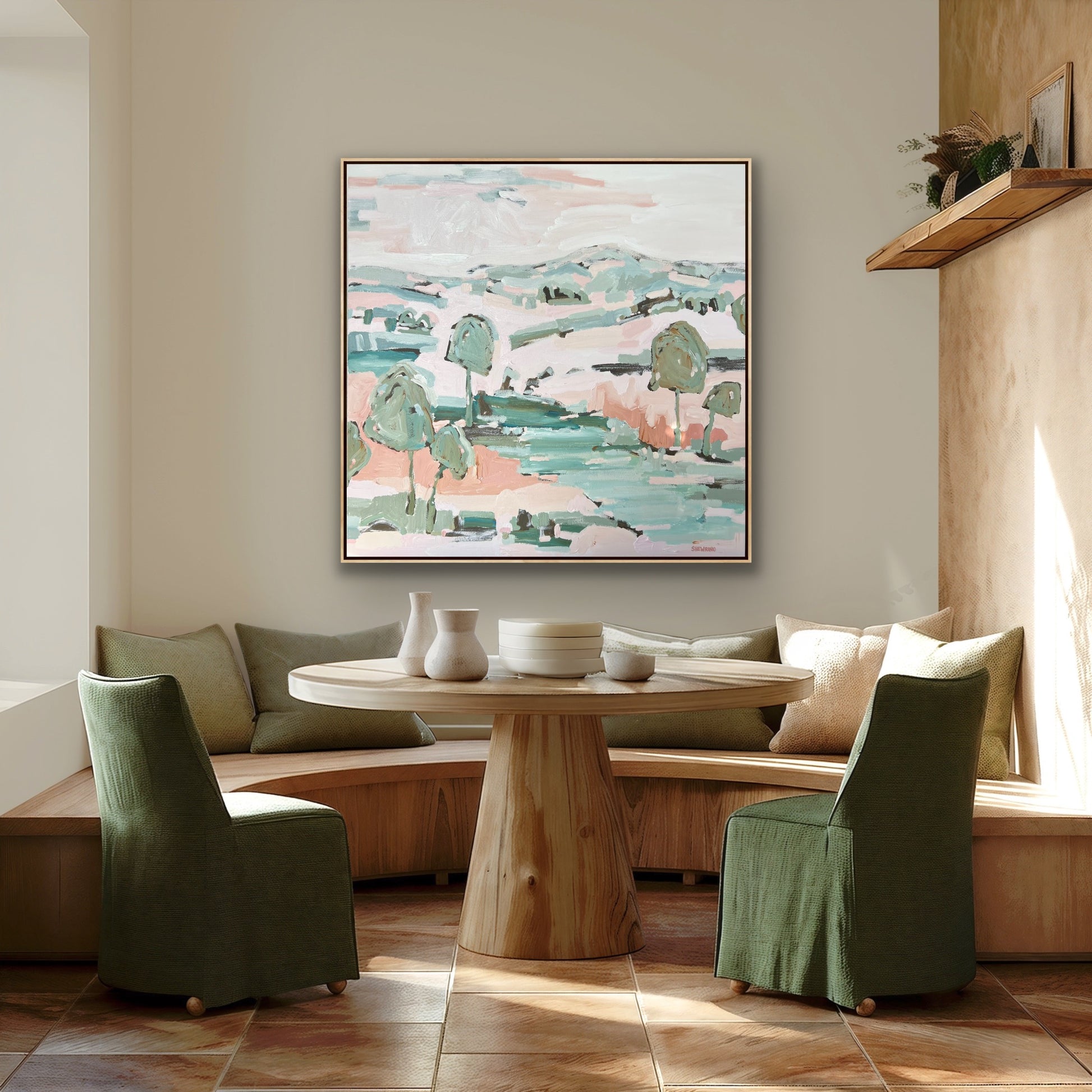 103 x 103 cm Framed in natural timber frame (canvas 100 x 100 cm)