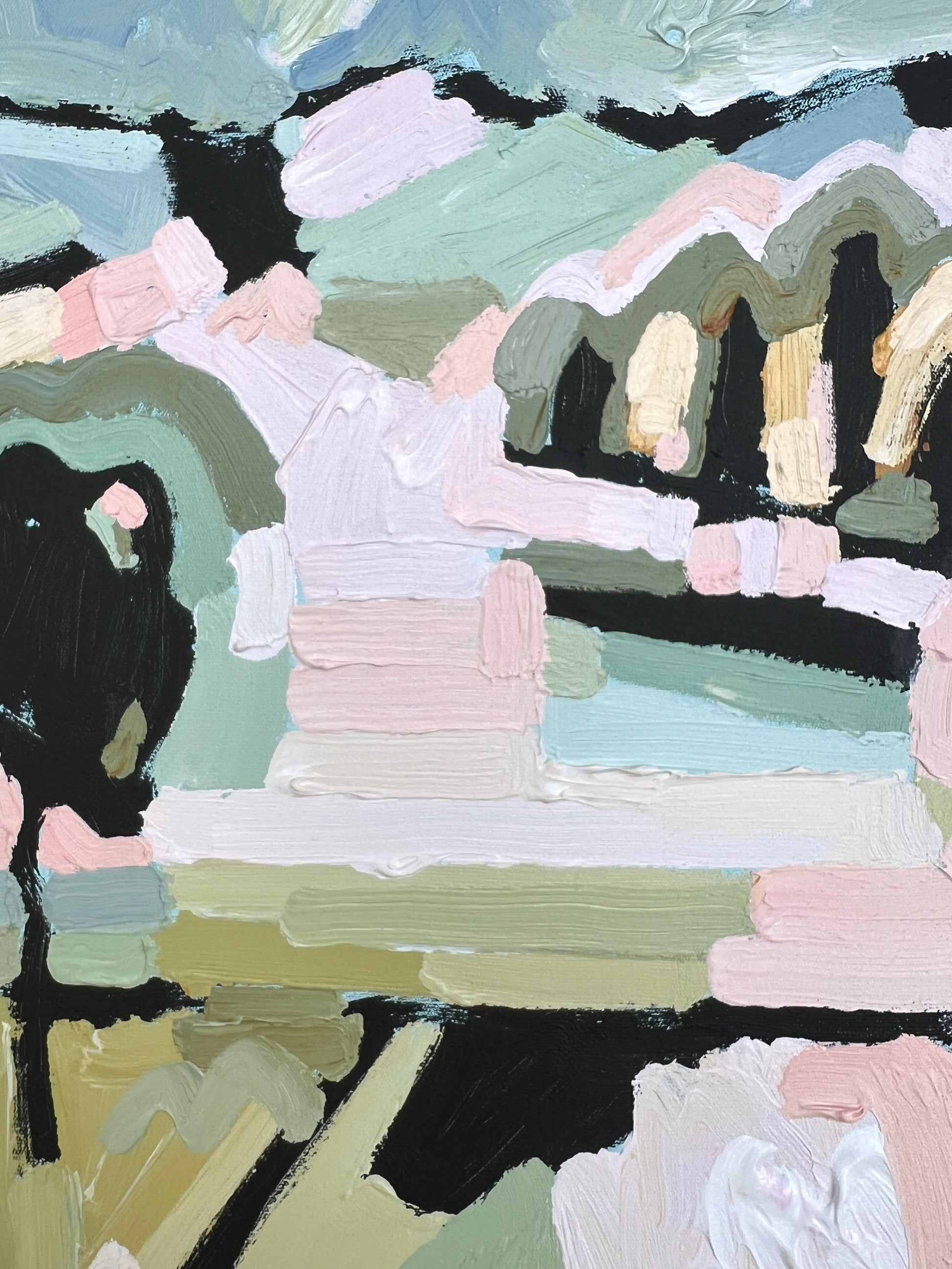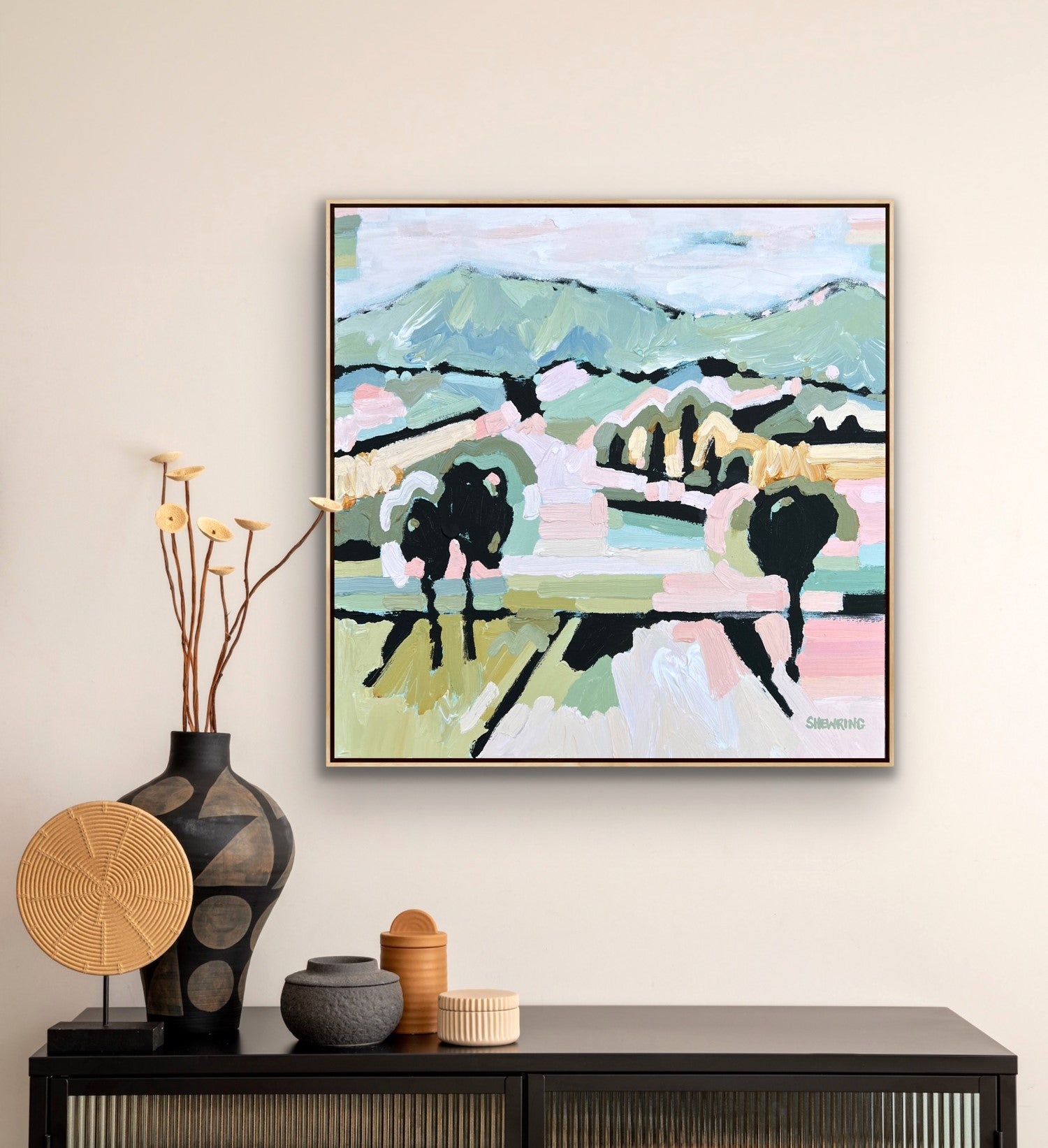 Capturing the warmth of the day and the peaceful feeling of immersing yourself into the countryside this artwork has been painted with expressive brushstrokes that bring it to life!