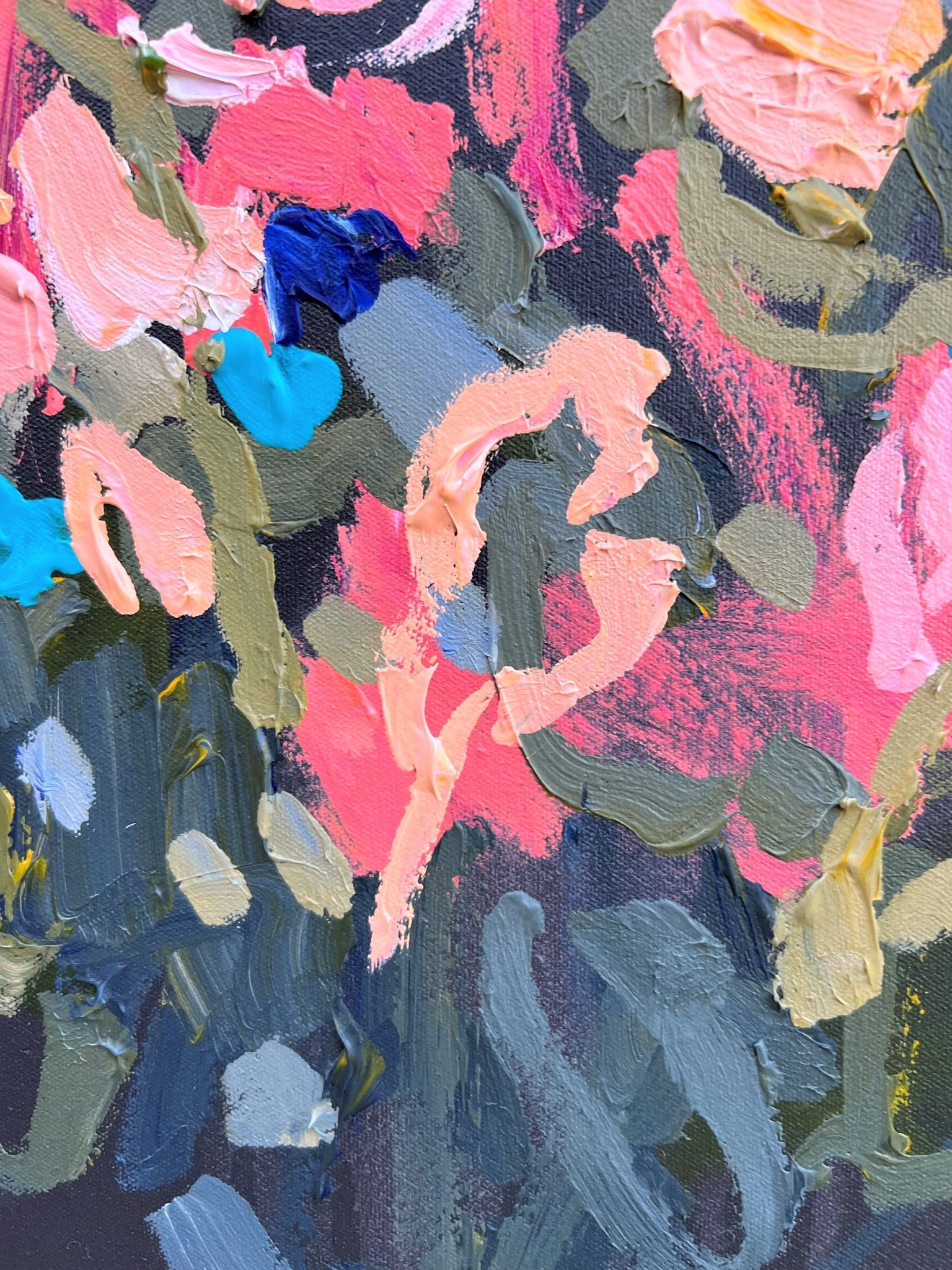 I am obsessed with colour and nature! Outside in the natural environment is where I spend my time sketching the organic forms that surround me. I take them back to my studio where I abstract the beauty and vibrancy of the experience into my paintings. What excites me is creating compositions using a luminous mix of rich colours and texture bringing the outdoors inside feeling happiness from connecting with nature.