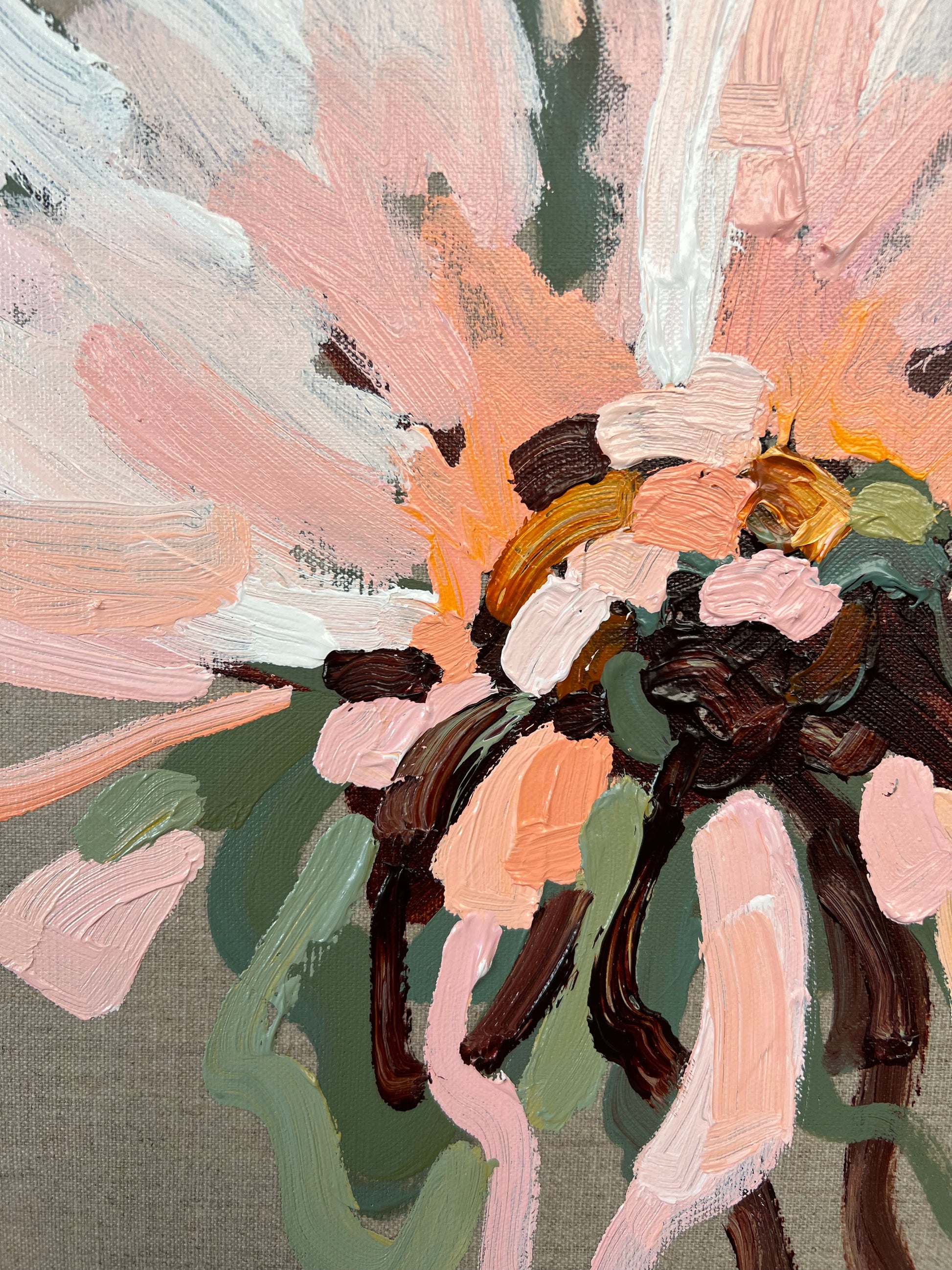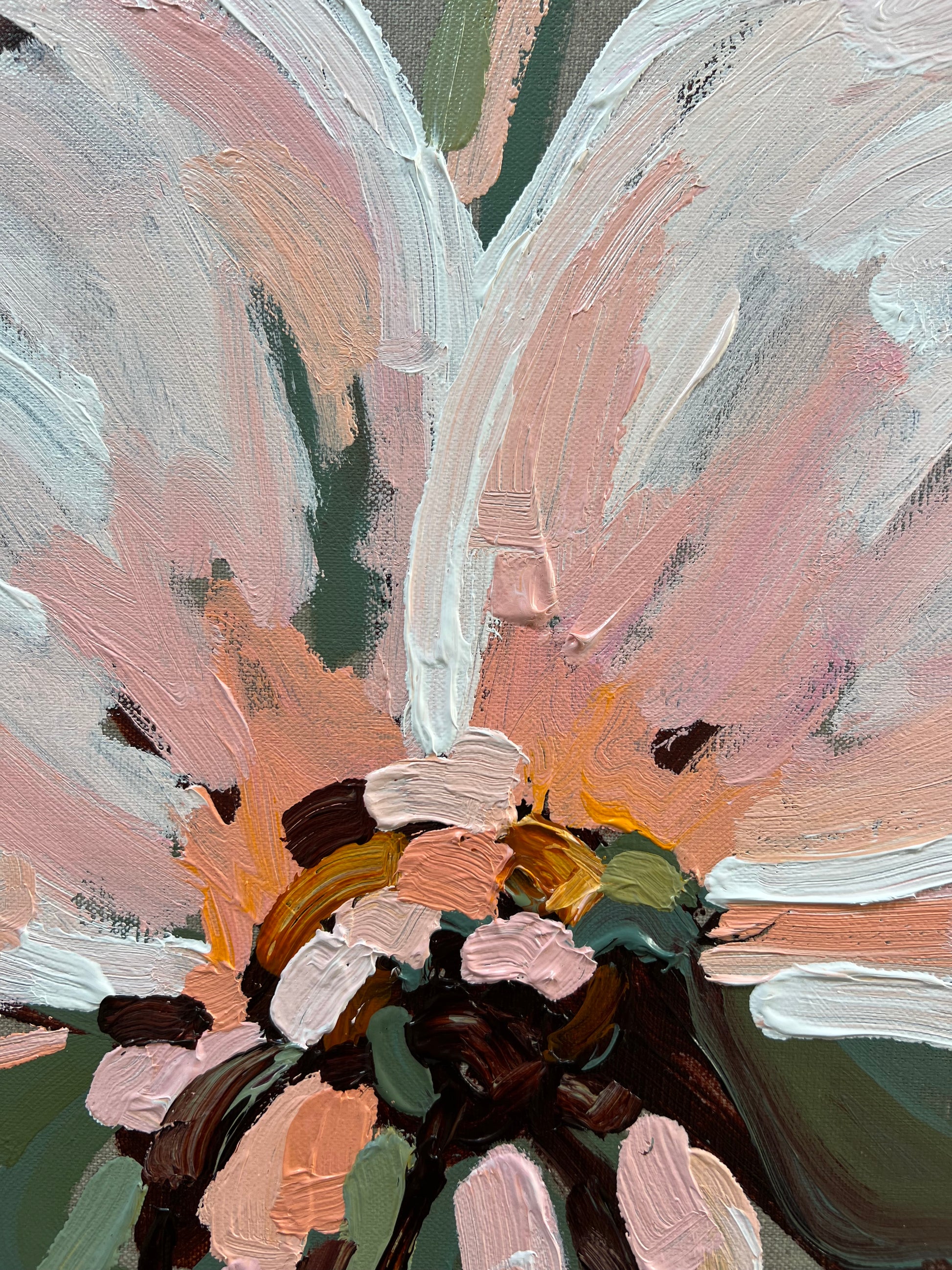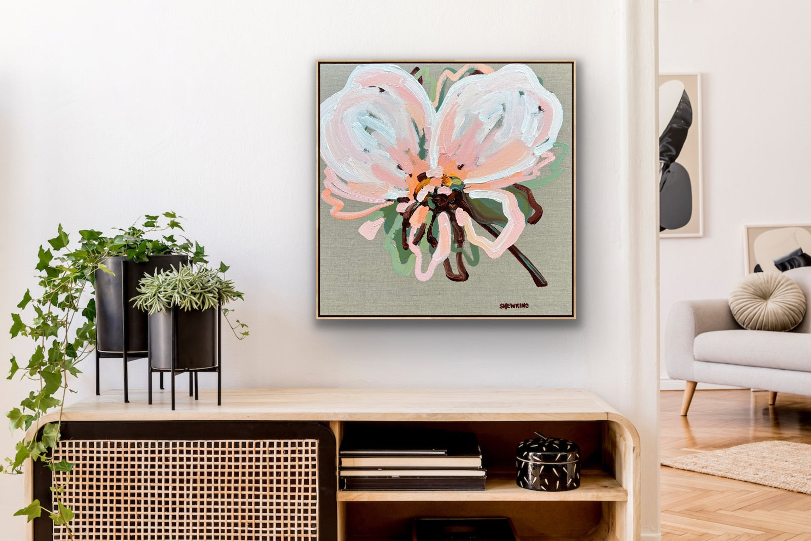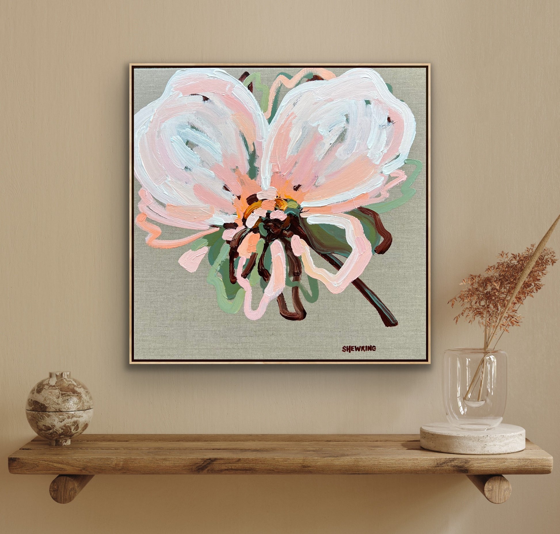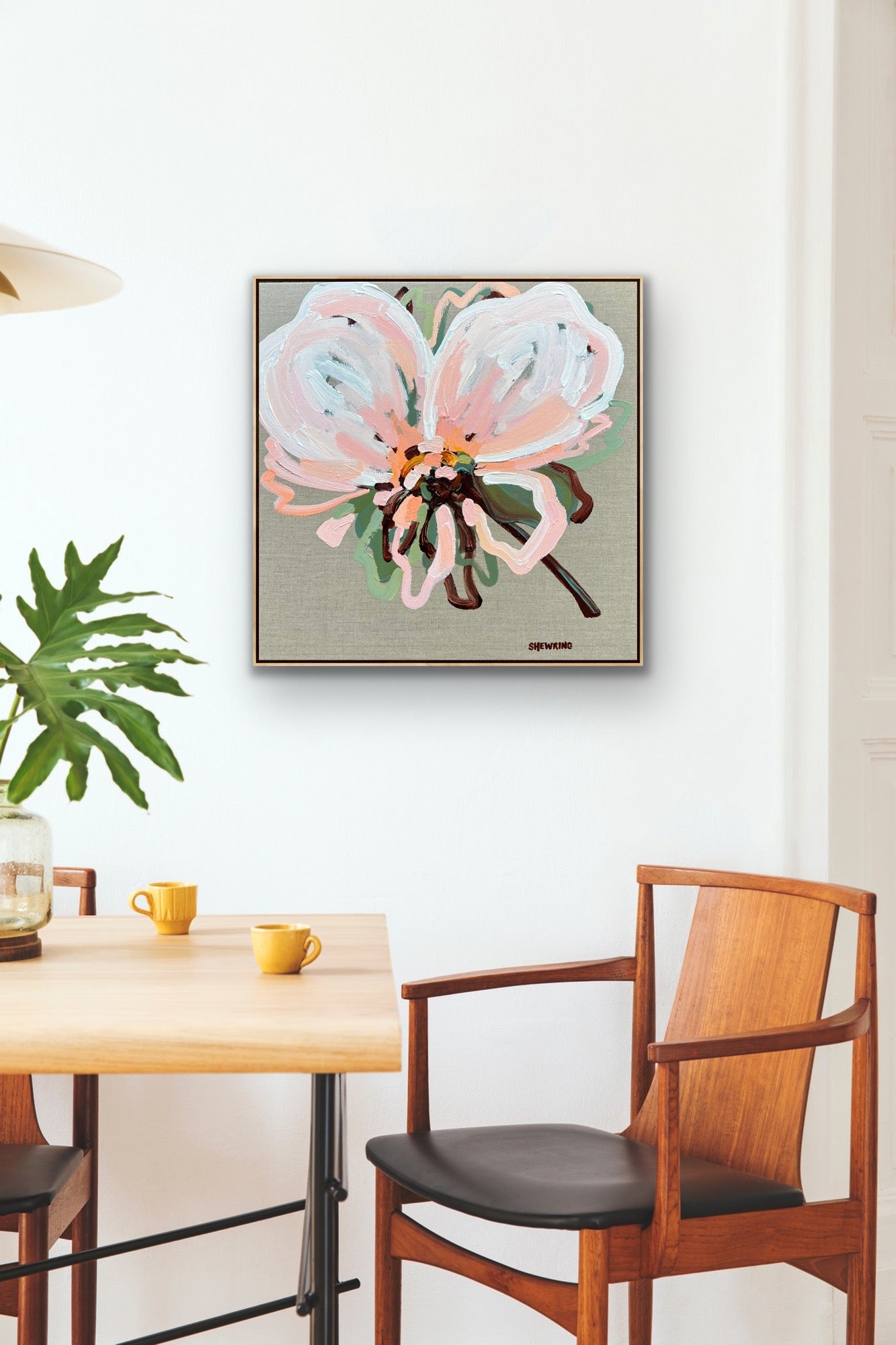 The Flower is a beautifully textured flower abstract on linen canvas. This painting has expressive individual brushstrokes that bring it to life!