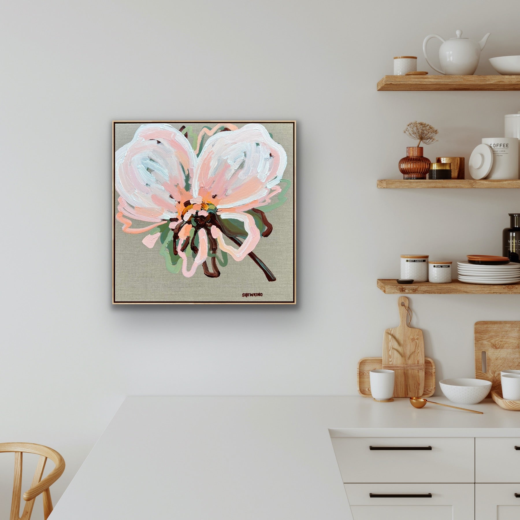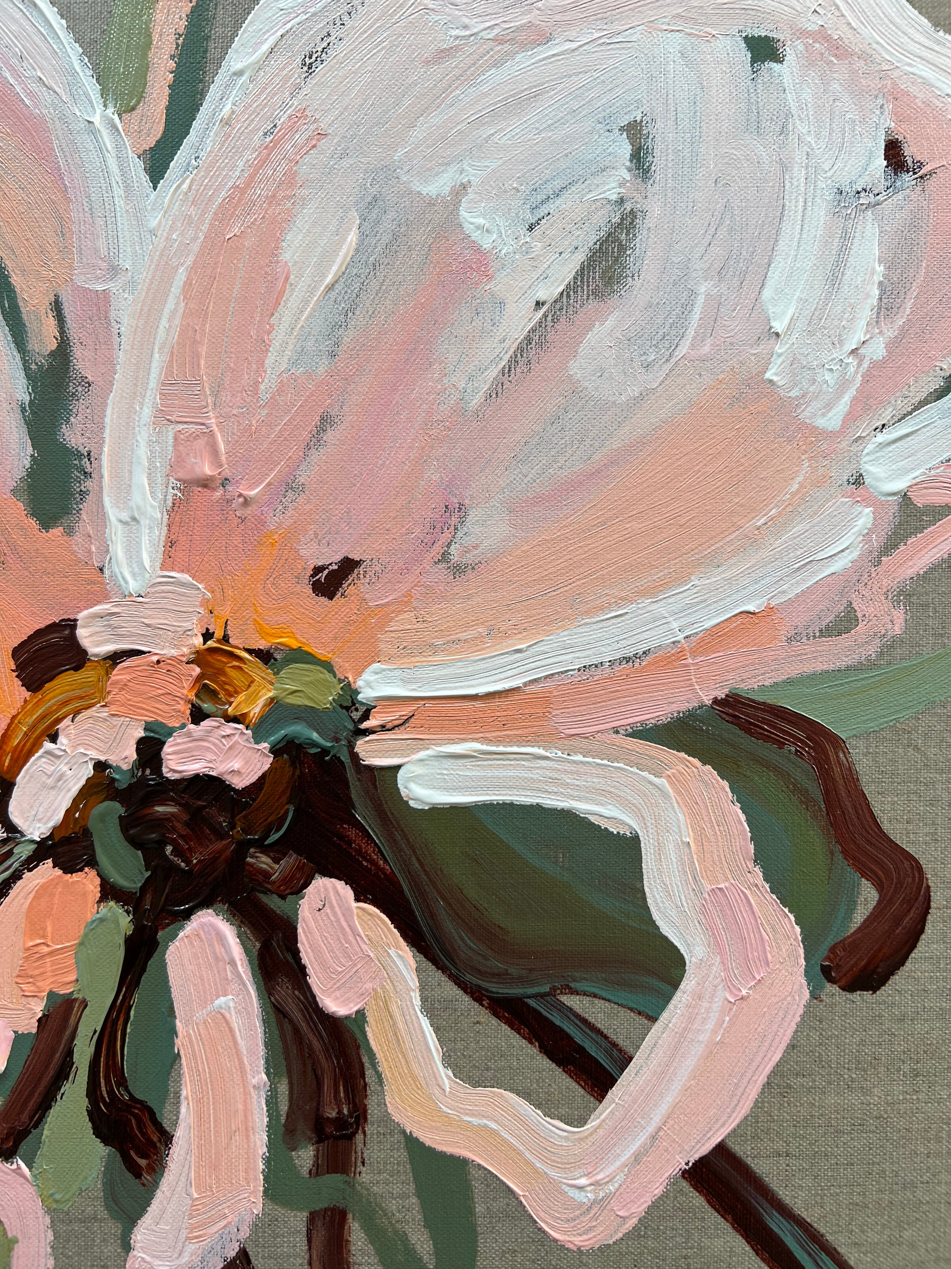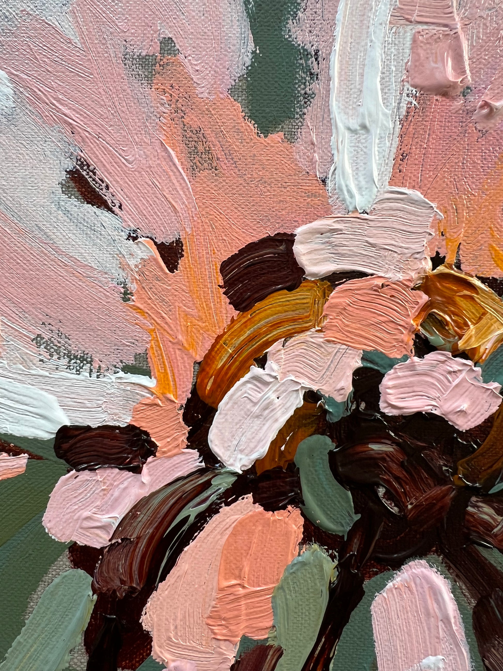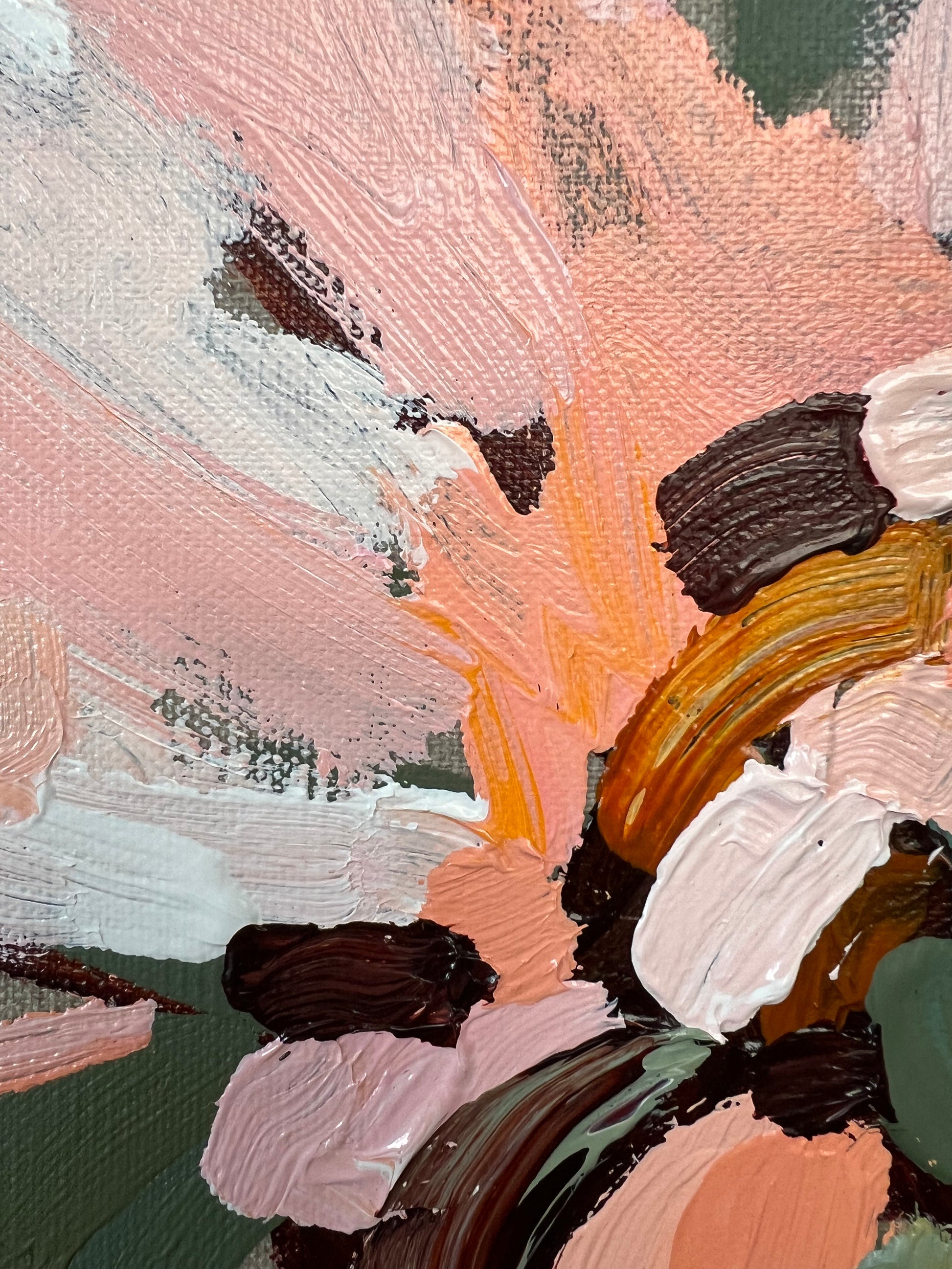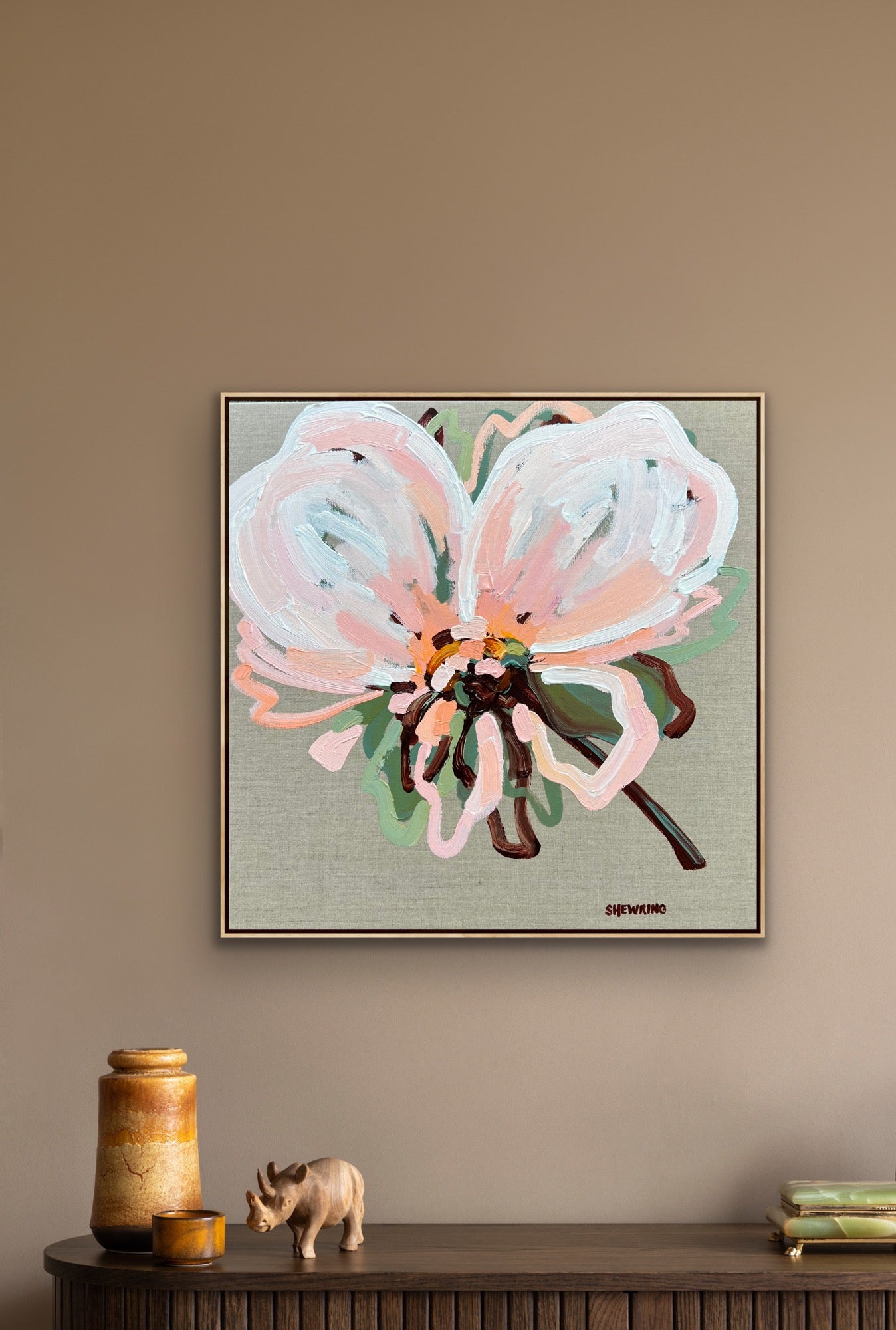 The Flower is a beautifully textured flower abstract on linen canvas. This painting has expressive individual brushstrokes that bring it to life!