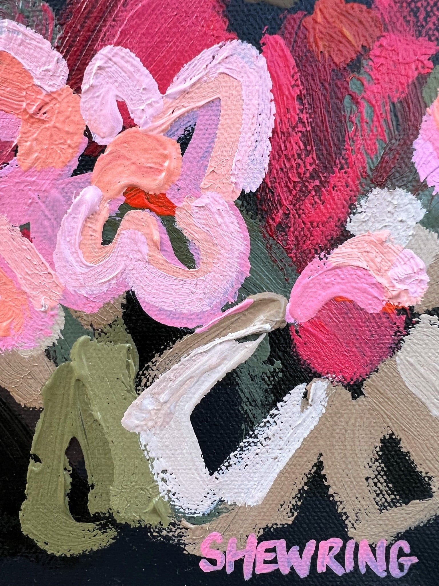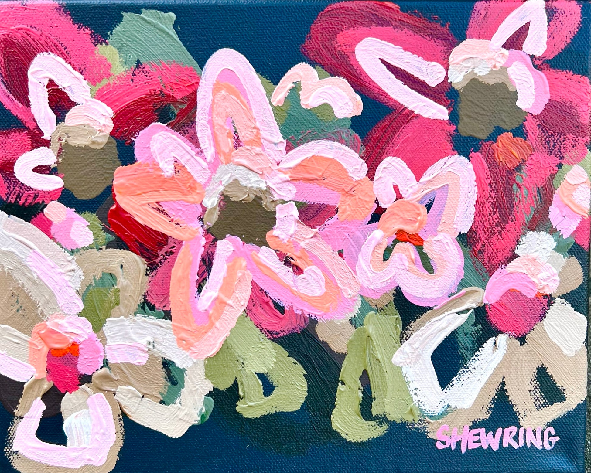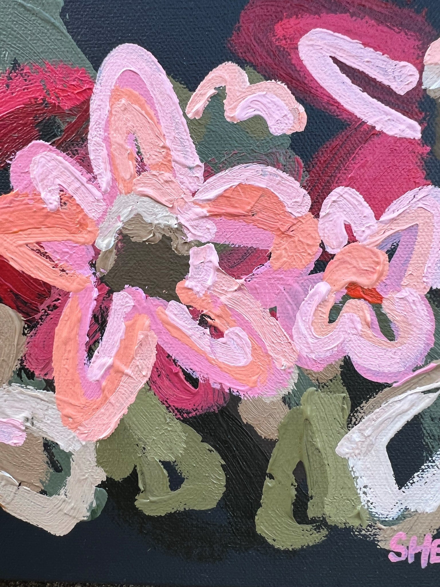 These flowers are painted with texture in an expressive style in vibrant pinks, delicious apricots, peaches, melons, sage and olive green and a touch of soft earthy tones that would suit a range of different decors