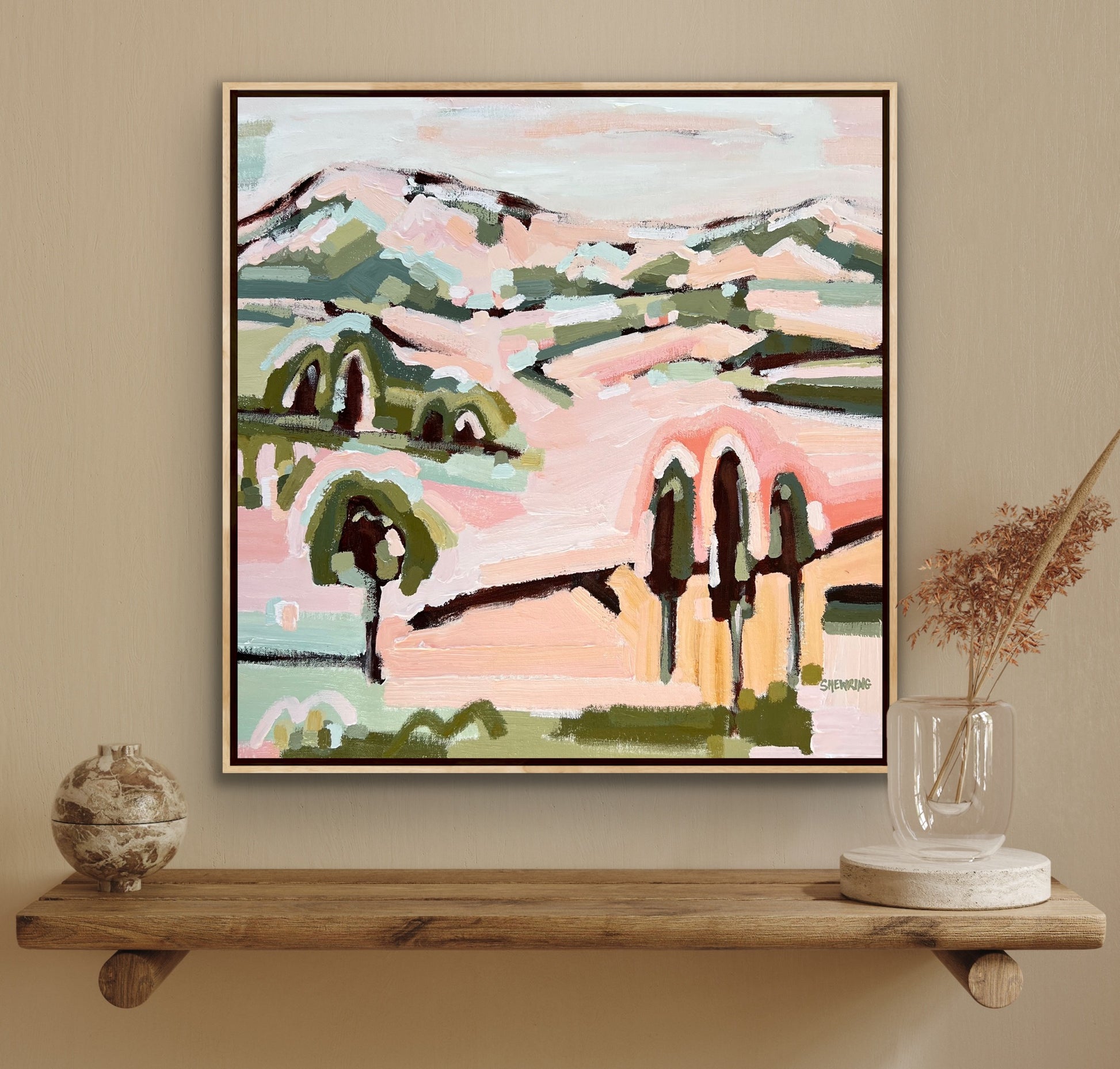 Capturing the warmth of the day and the peaceful feeling of immersing yourself into the countryside this artwork has been painted with expressive brushstrokes that bring it to life!