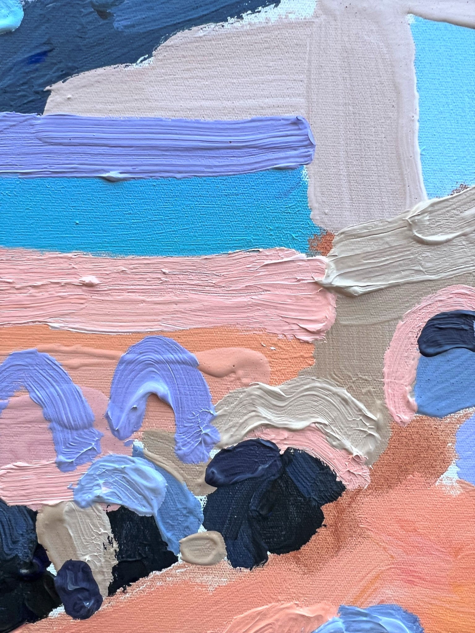 I am obsessed with colour and nature! Outside in the natural environment is where I spend my time sketching the organic forms that surround me. I take them back to my studio where I abstract the beauty and vibrancy of the experience into my paintings. What excites me is creating compositions using a luminous mix of rich colours and texture bringing the outdoors inside feeling happiness from connecting with nature.