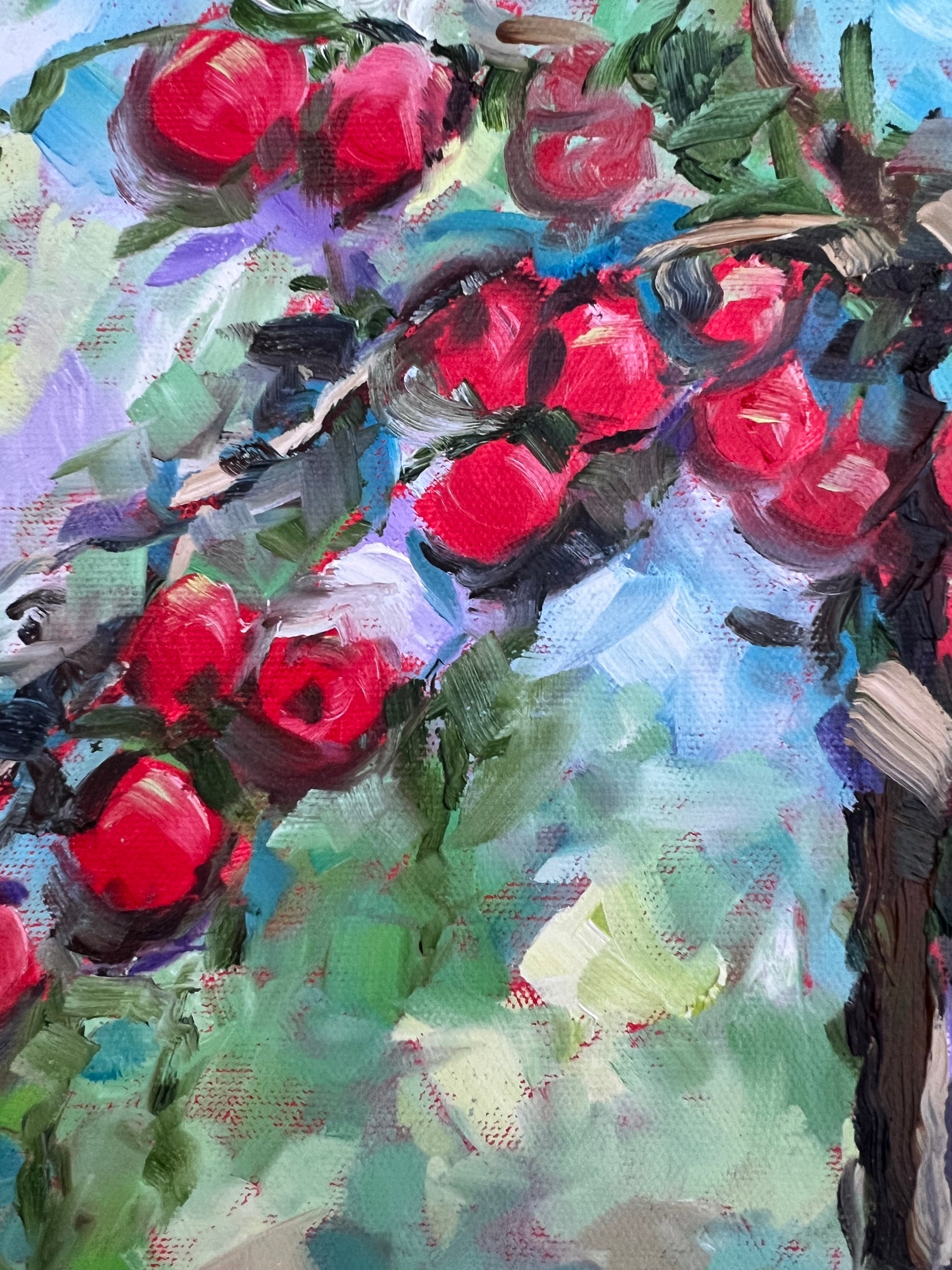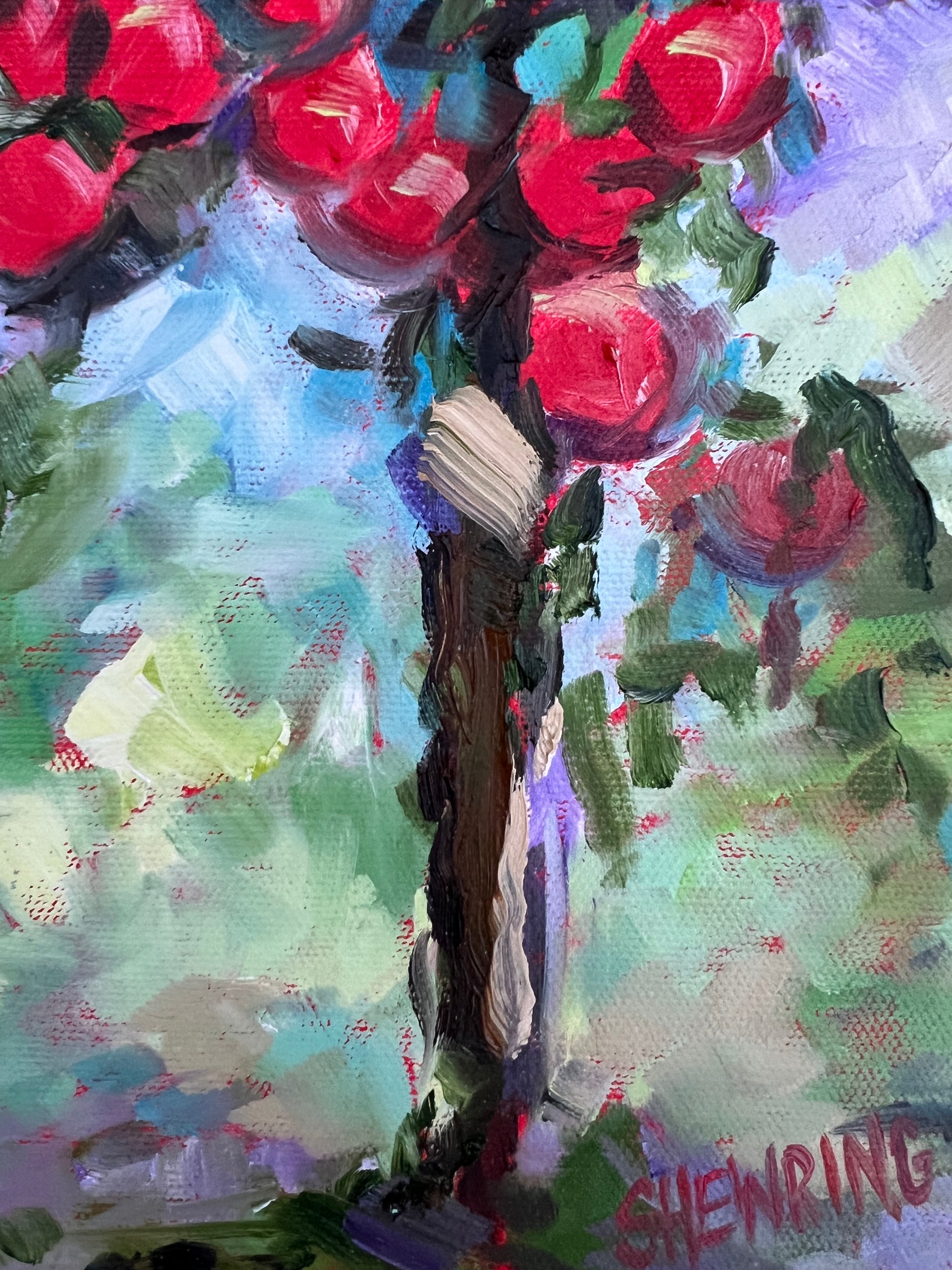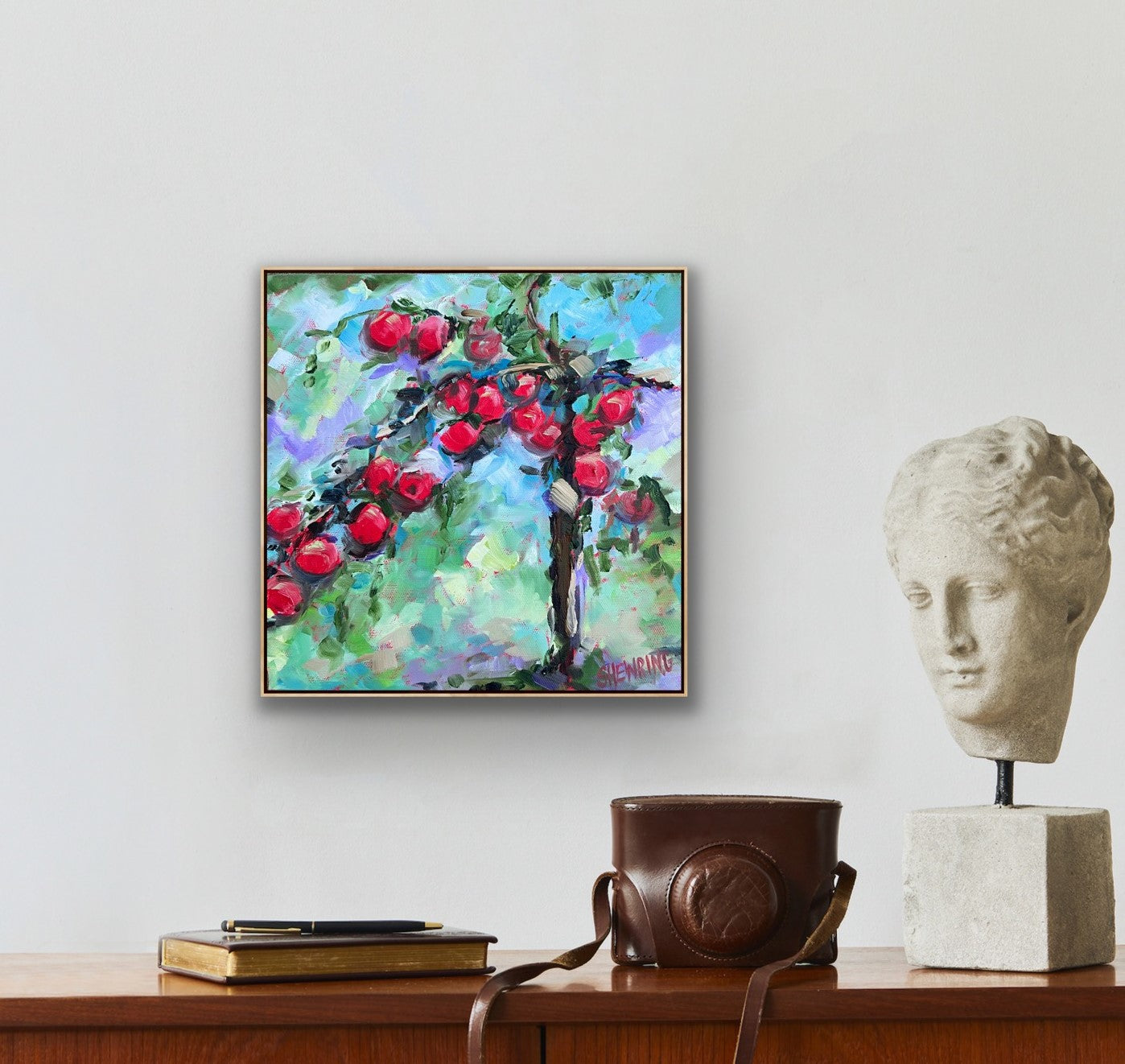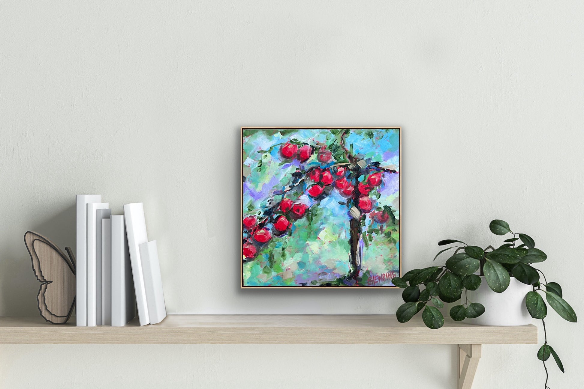 Under The Apple Tree is a beautifully textured textured impression of an apple tree in a garden setting . This painting has expressive individual brushstrokes that bring it to life!