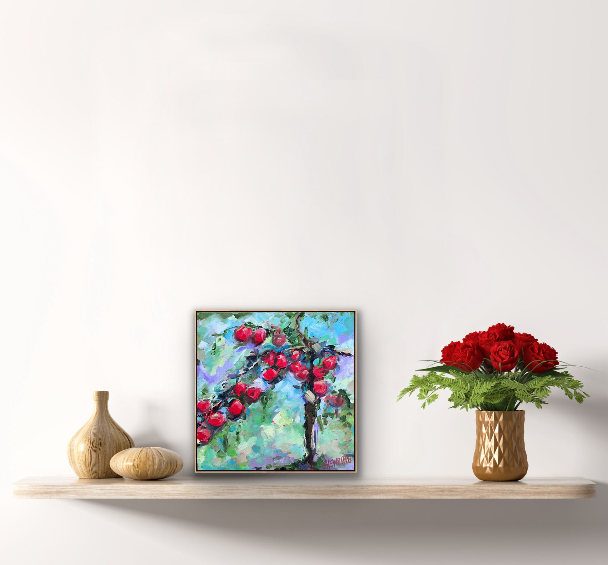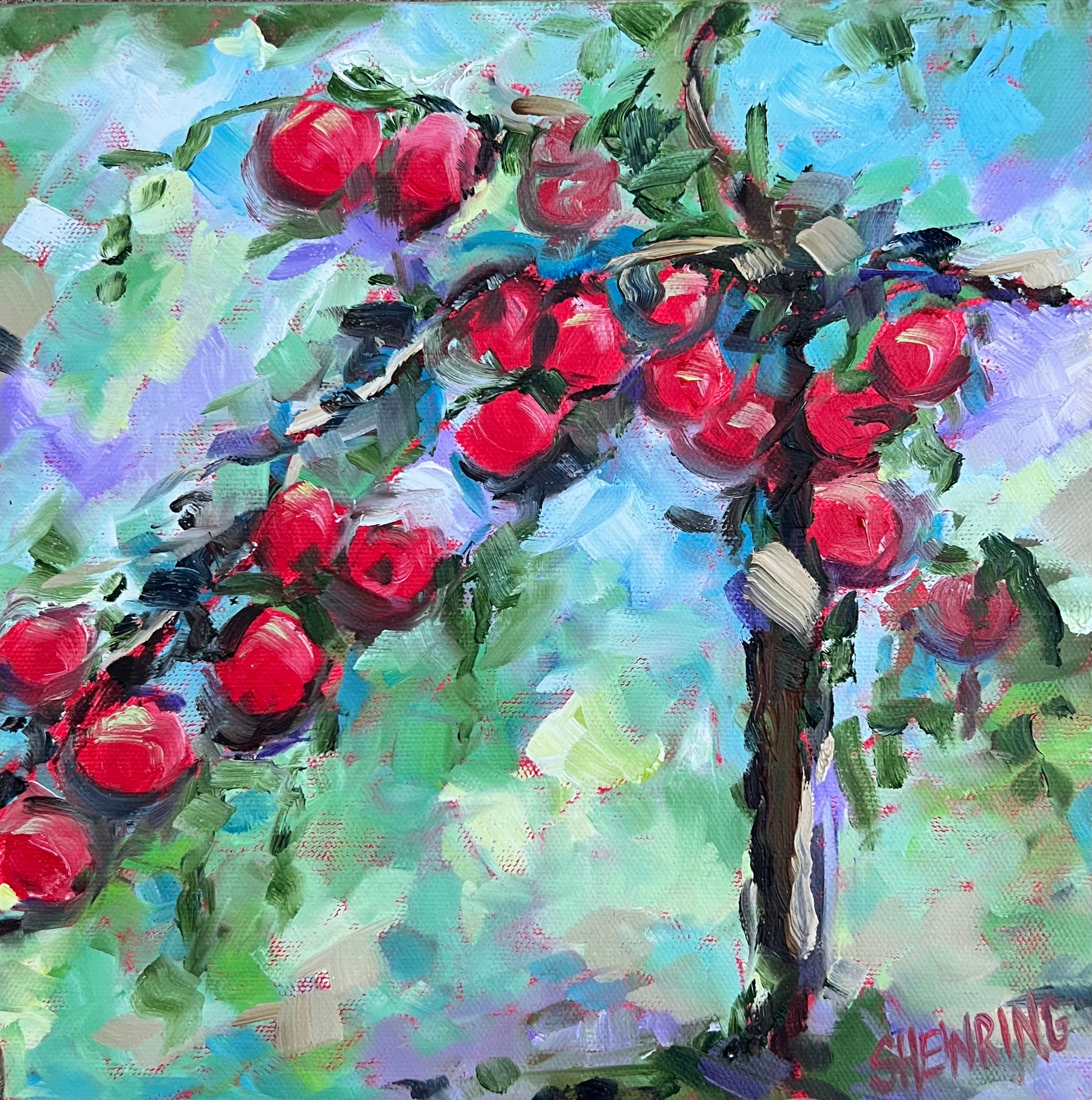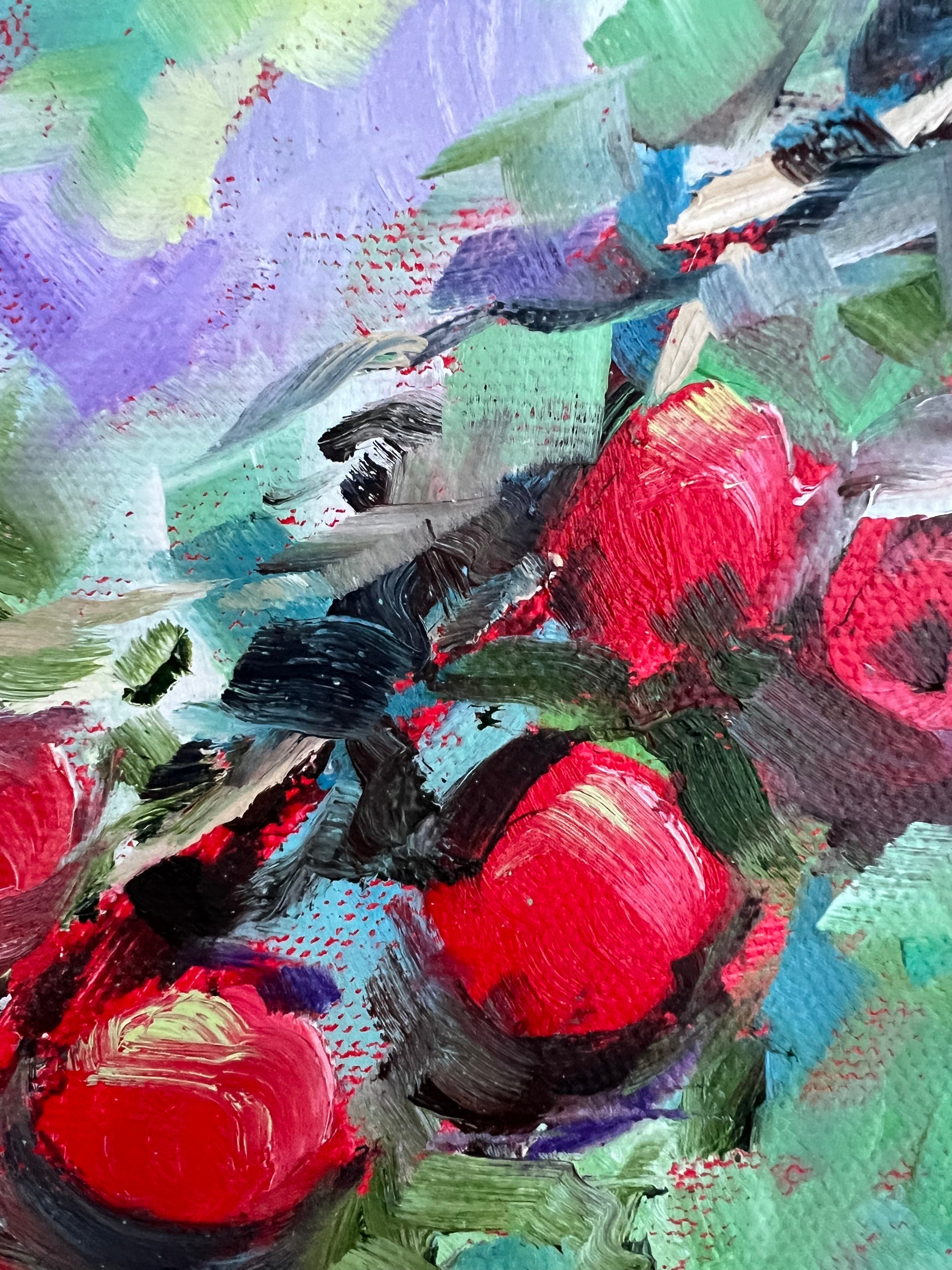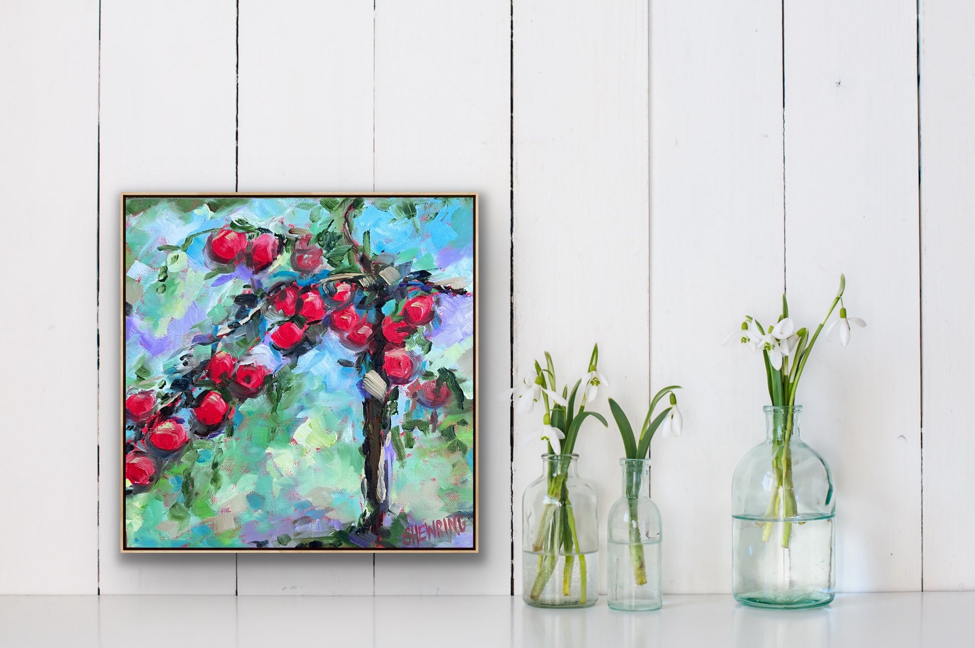Under The Apple Tree is a beautifully textured textured impression of an apple tree in a garden setting . This painting has expressive individual brushstrokes that bring it to life!
