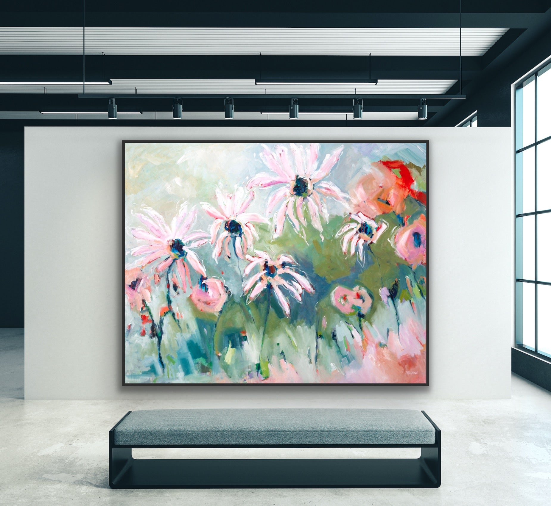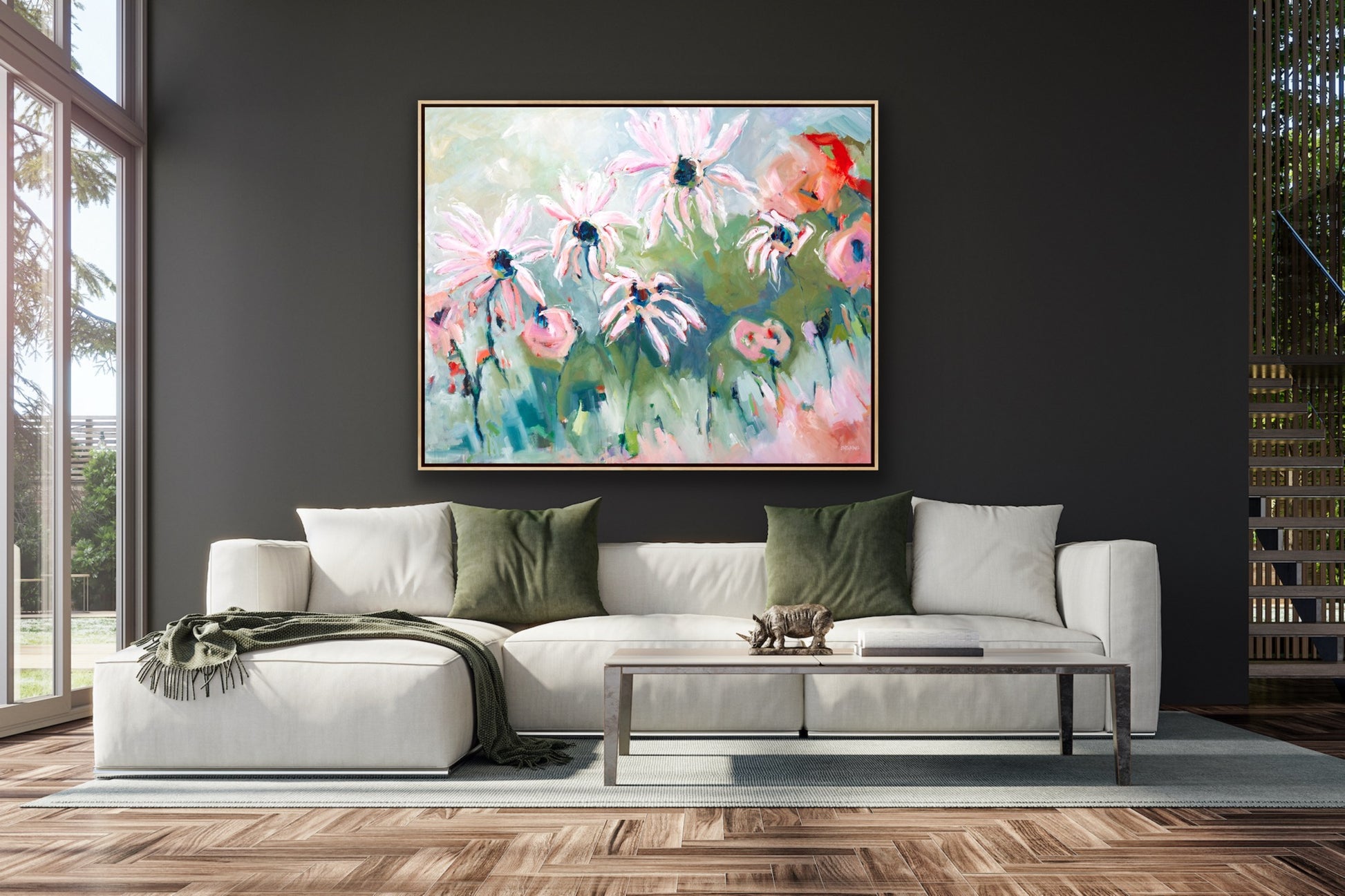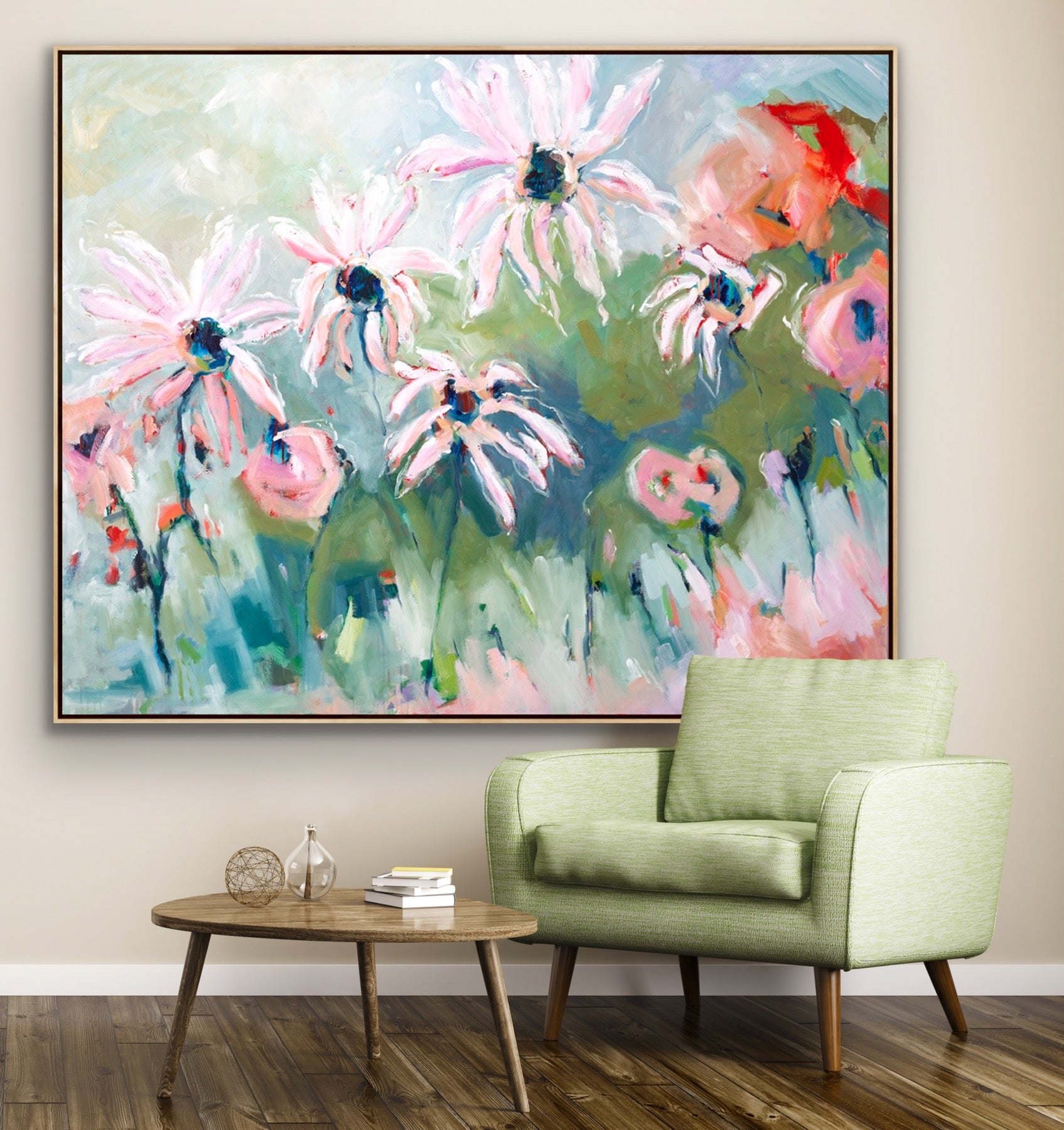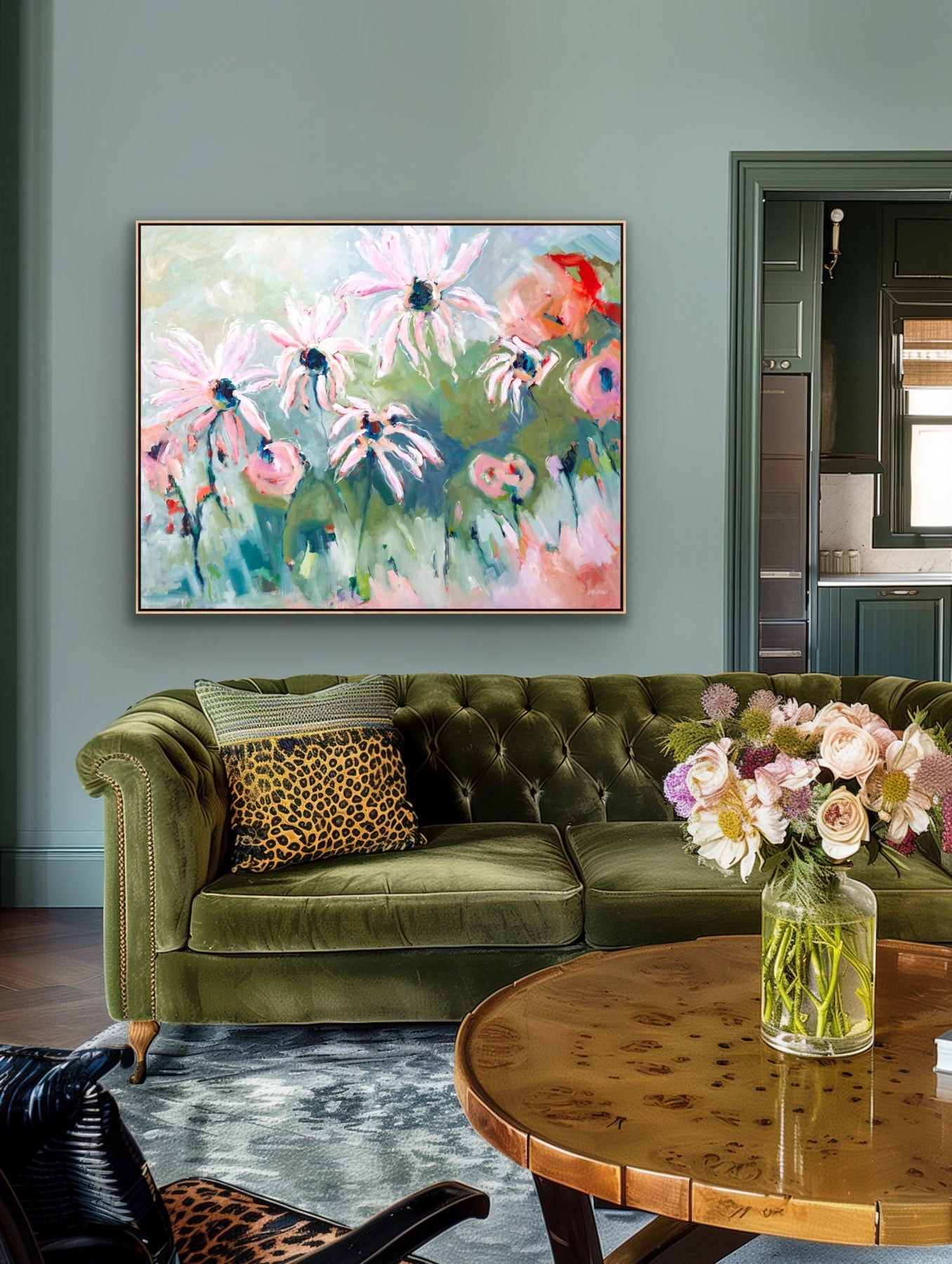 This art print onto canvas is full of life, movement and colour with joyous flowers.