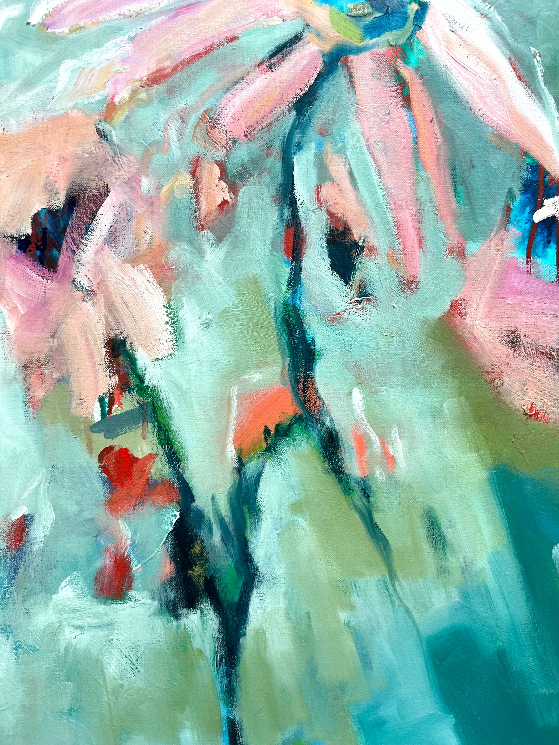 I am obsessed with colour and nature! Outside in the natural environment is where I spend my time sketching the organic forms that surround me. I take them back to my studio where I abstract the beauty and vibrancy of the experience into my paintings. What excites me is creating compositions using a luminous mix of rich colours and texture bringing the outdoors inside feeling happiness from connecting with nature.