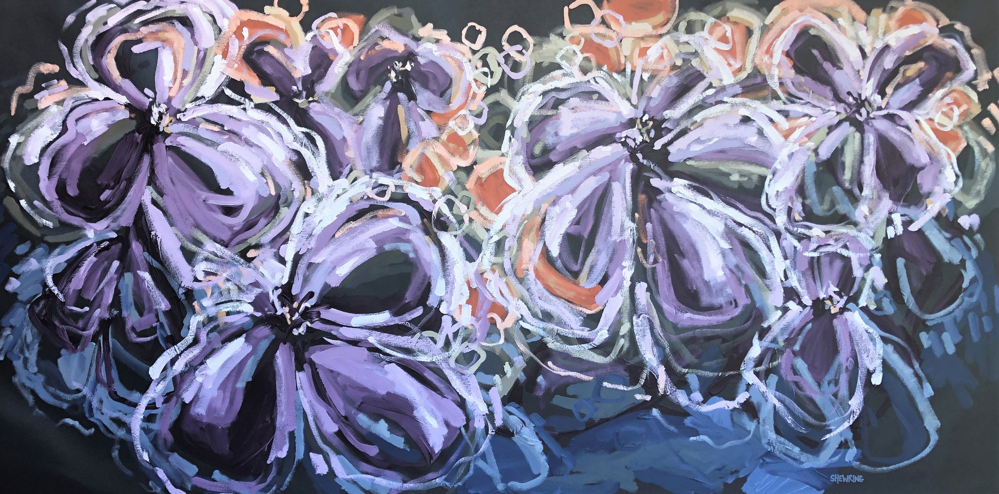 I am obsessed with colour and nature! Outside in the natural environment is where I spend my time sketching the organic forms that surround me. I take them back to my studio where I abstract the beauty and vibrancy of the experience into my paintings. What excites me is creating compositions using a luminous mix of rich colours and texture bringing the outdoors inside feeling happiness from connecting with nature.