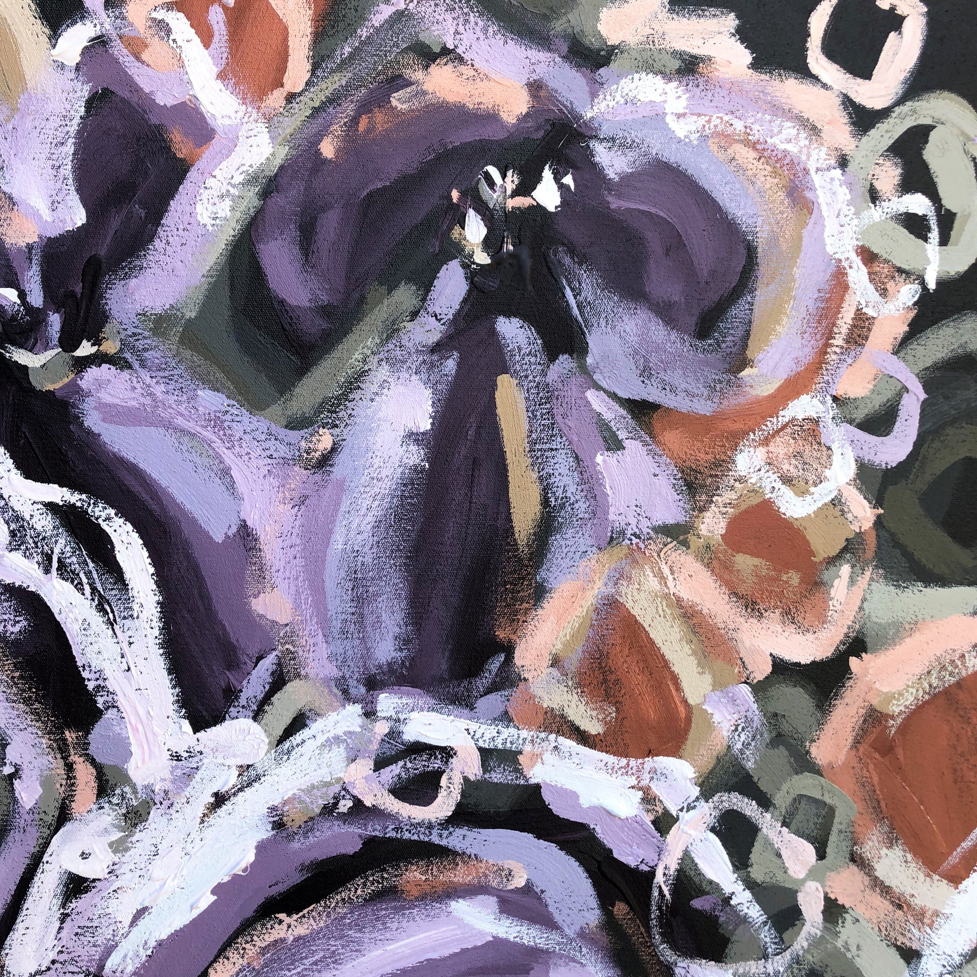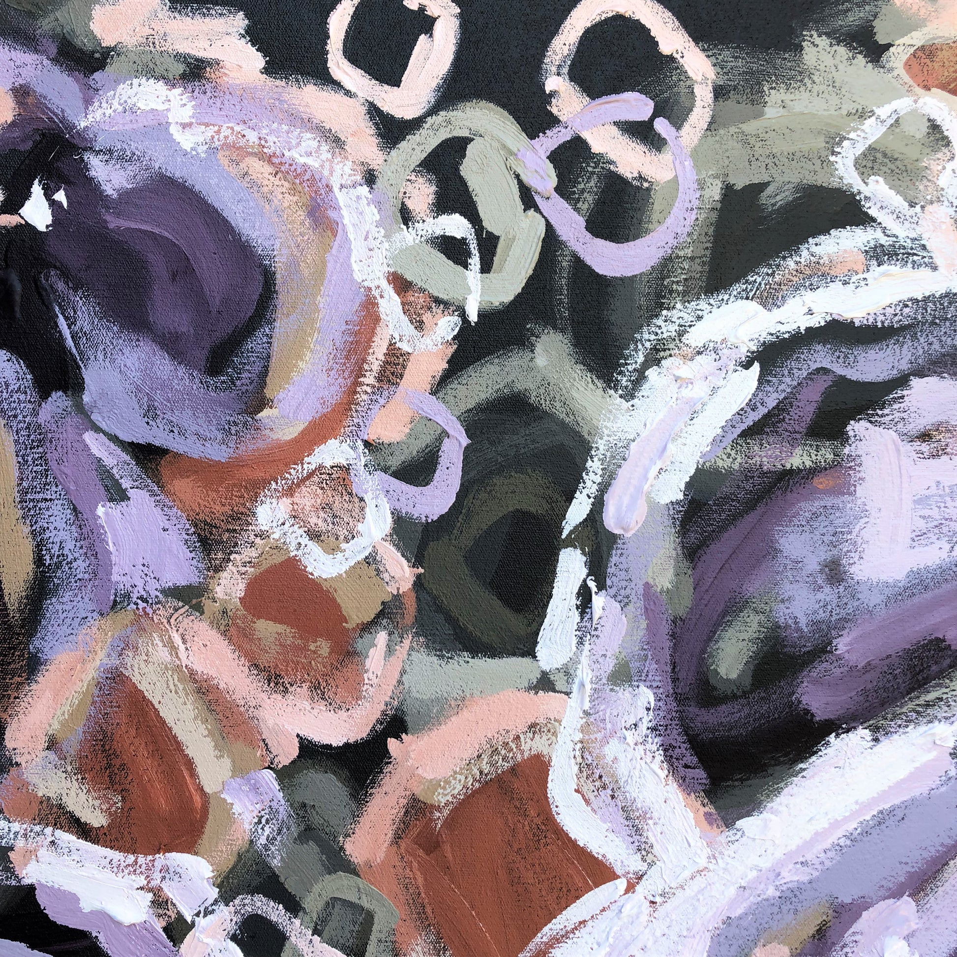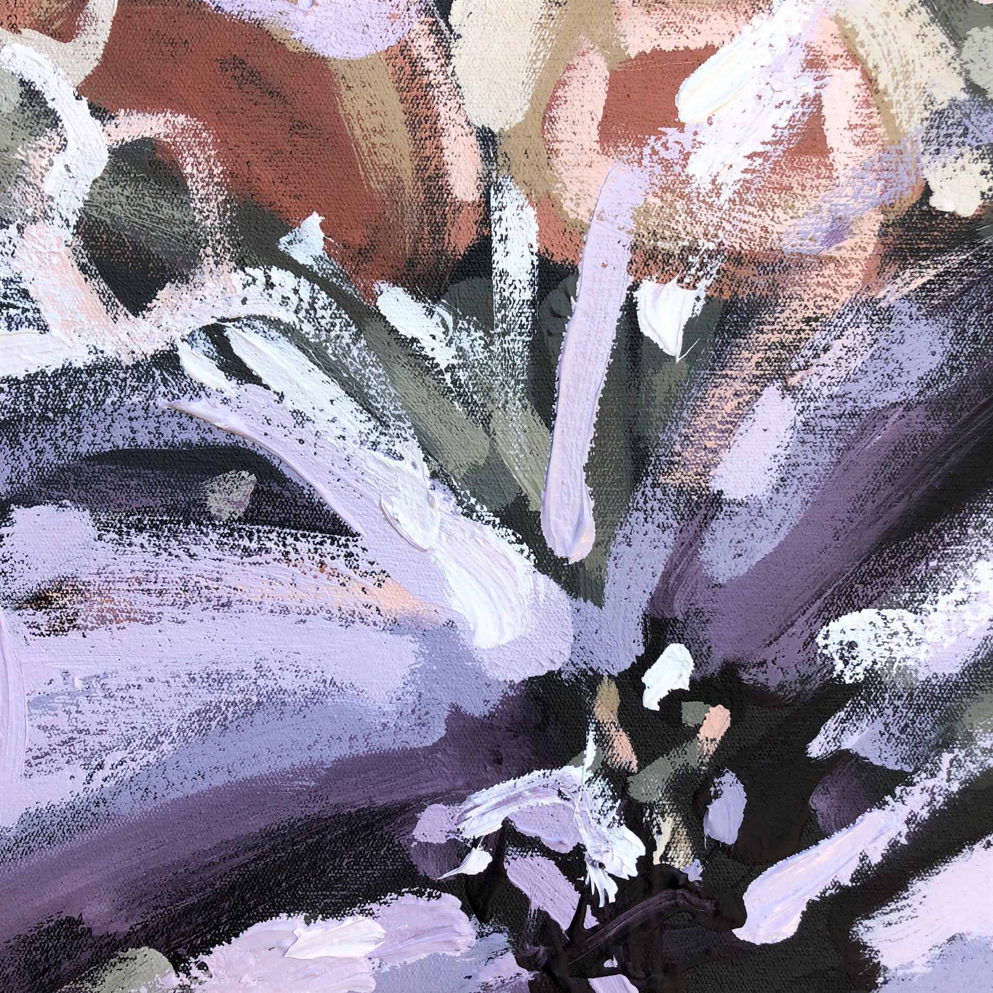 The abstracted flowers and foliage are painted in an expressive style with individual brushstrokes and texture to suit a range of different decors.