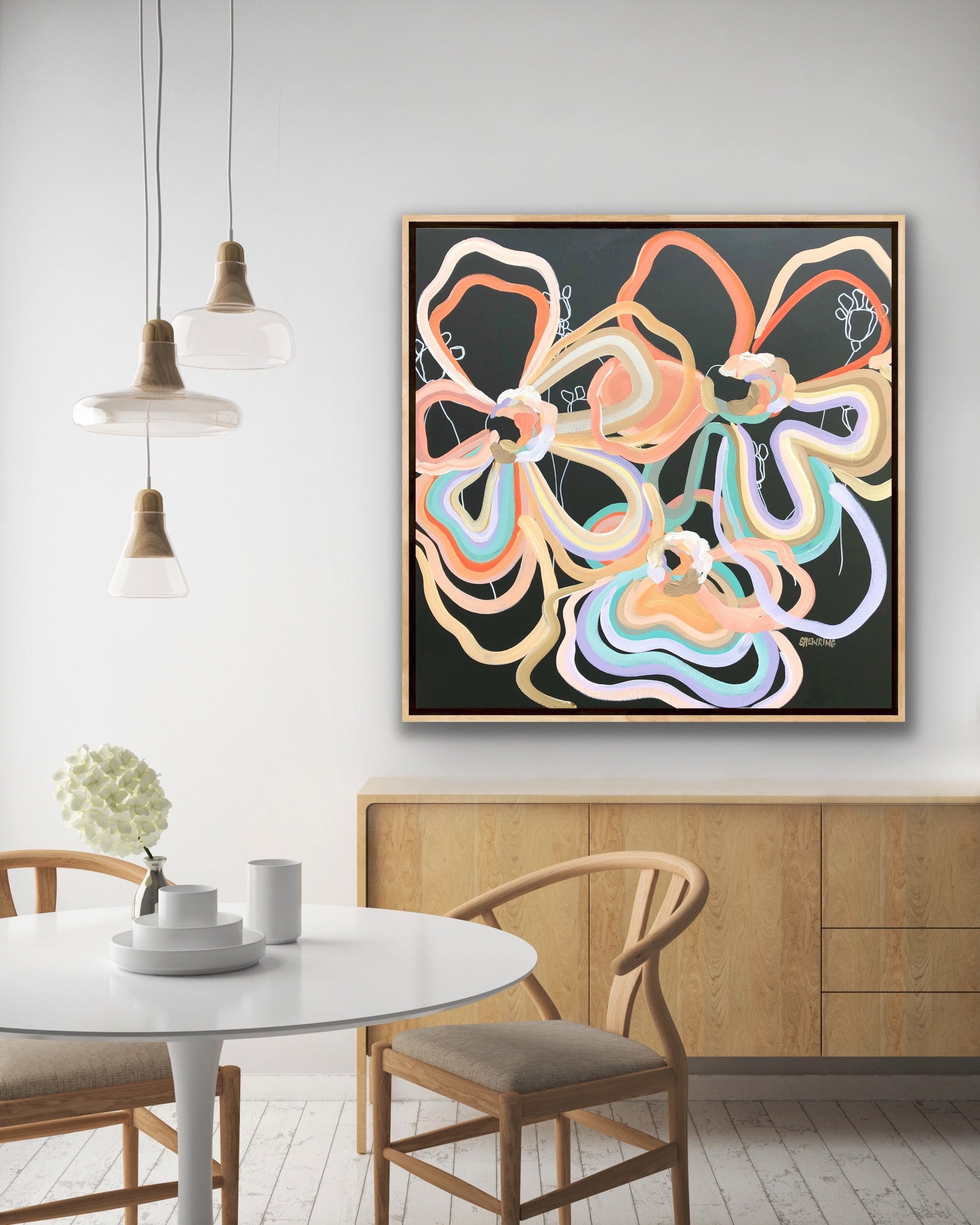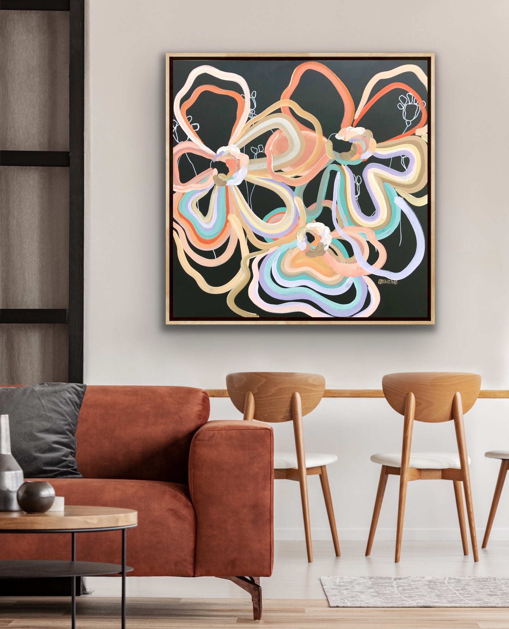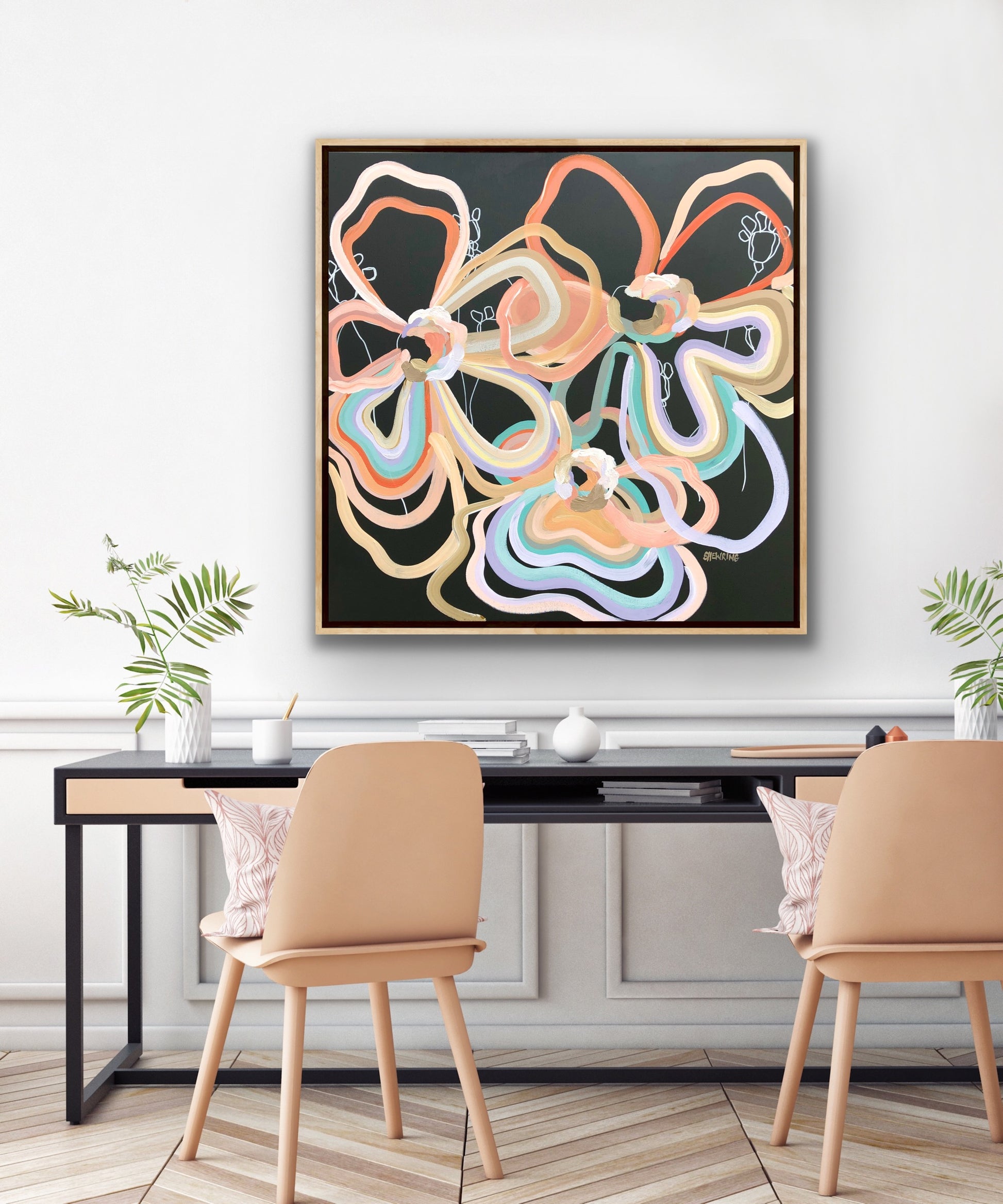 I am obsessed with colour and nature! Outside in the natural environment is where I spend my time sketching the organic forms that surround me. I take them back to my studio where I abstract the beauty and vibrancy of the experience into my paintings. What excites me is creating compositions using a luminous mix of rich colours and texture bringing the outdoors inside feeling happiness from connecting with nature.