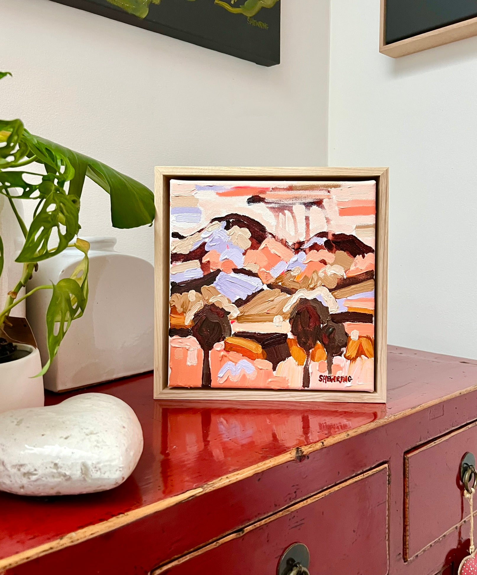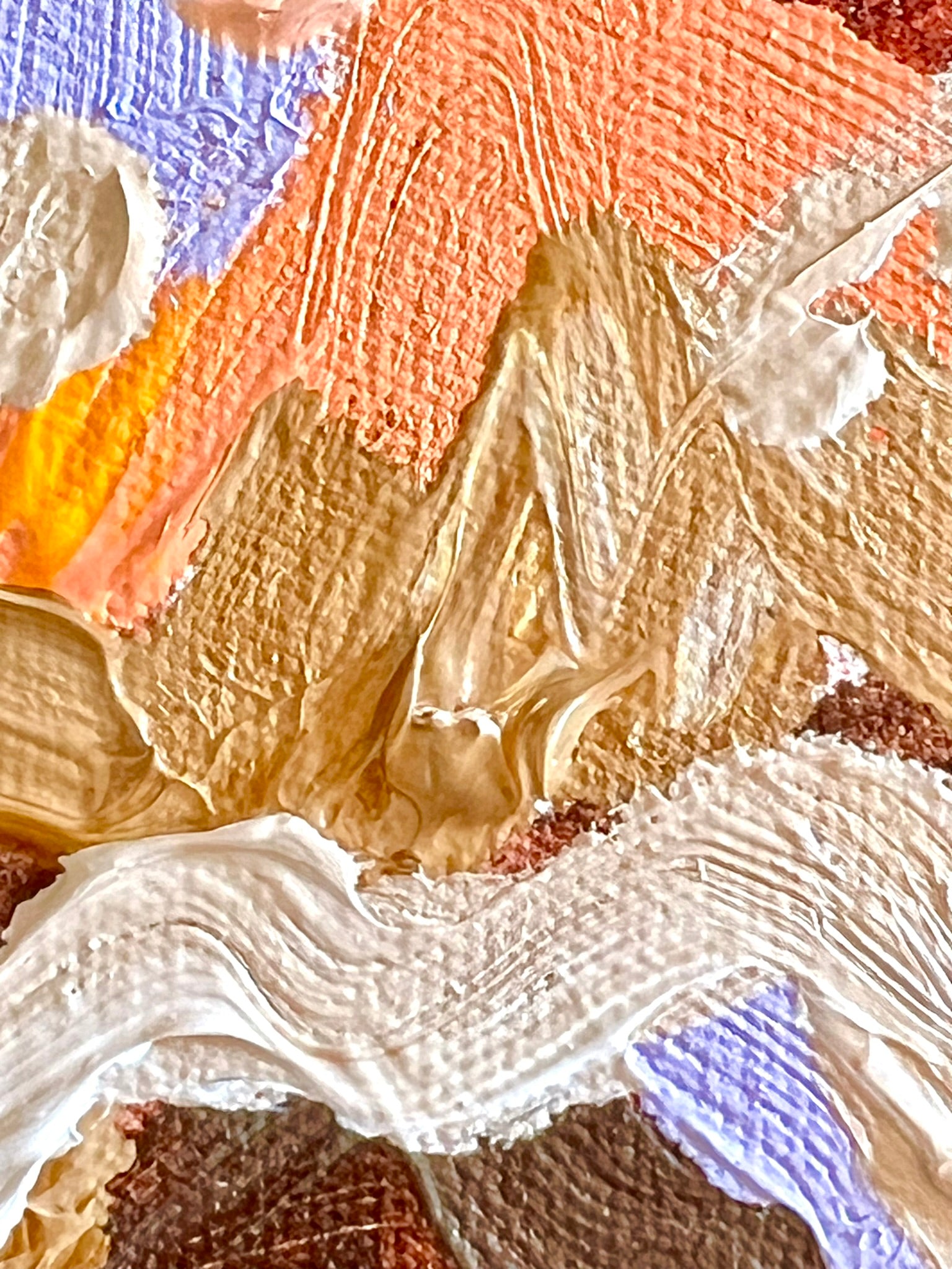 I am obsessed with colour and nature! Outside in the natural environment is where I spend my time sketching the organic forms that surround me. I take them back to my studio where I abstract the beauty and vibrancy of the experience into my paintings. What excites me is creating compositions using a luminous mix of rich colours and texture bringing the outdoors inside feeling happiness from connecting with nature.