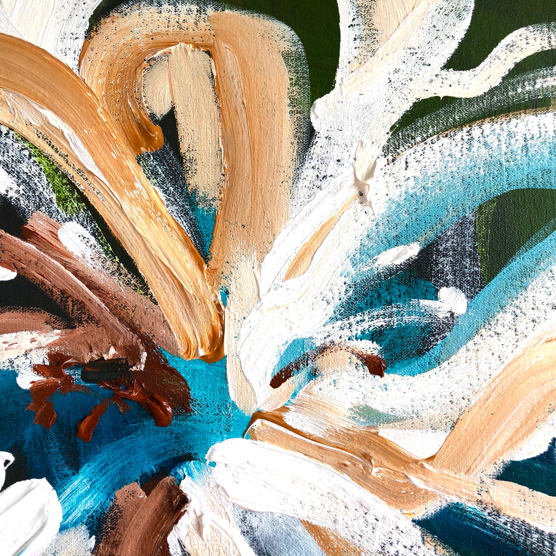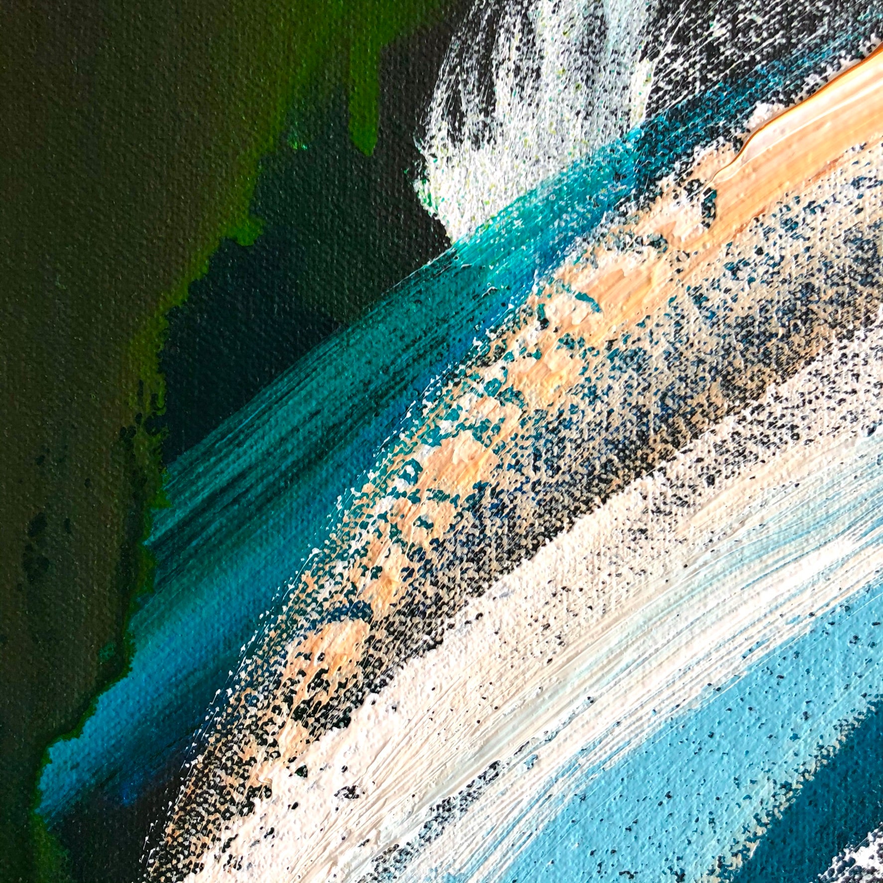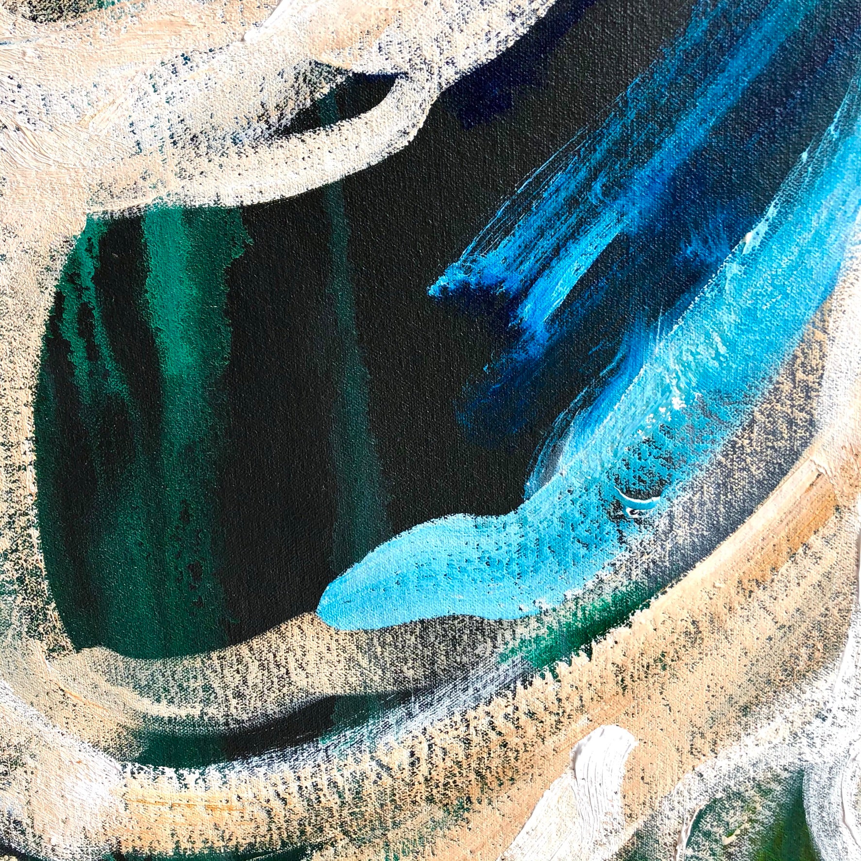 You Are Amazing packs a big bright punch of bold colour! Powerful abstract with bright creams, earthy tones and turquoise, ultramarine blues and lime green highlights. This painting has expressive individual brushstrokes that bring it to life!