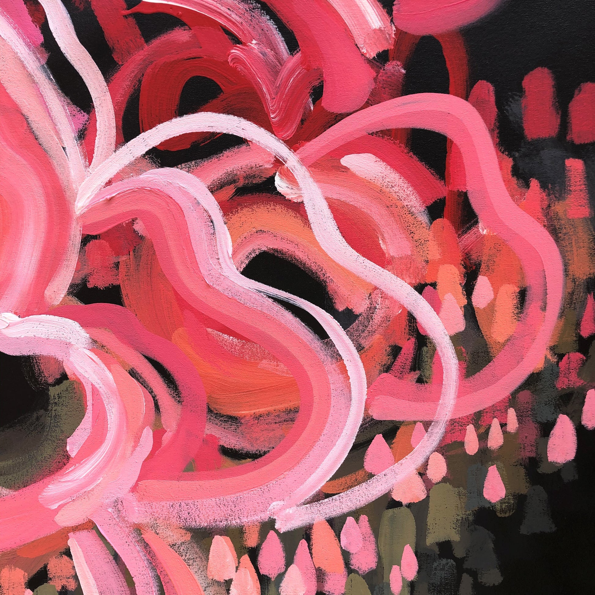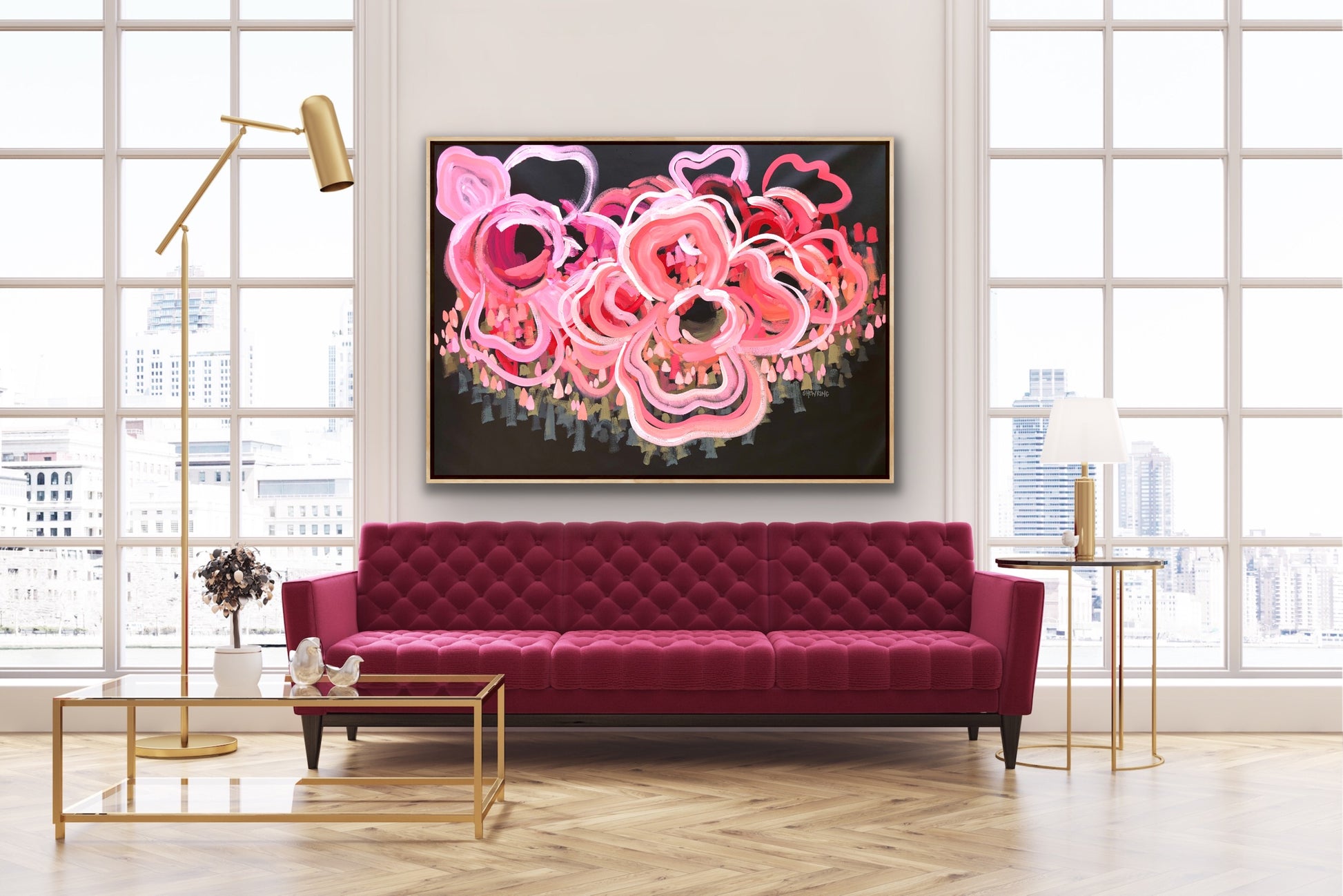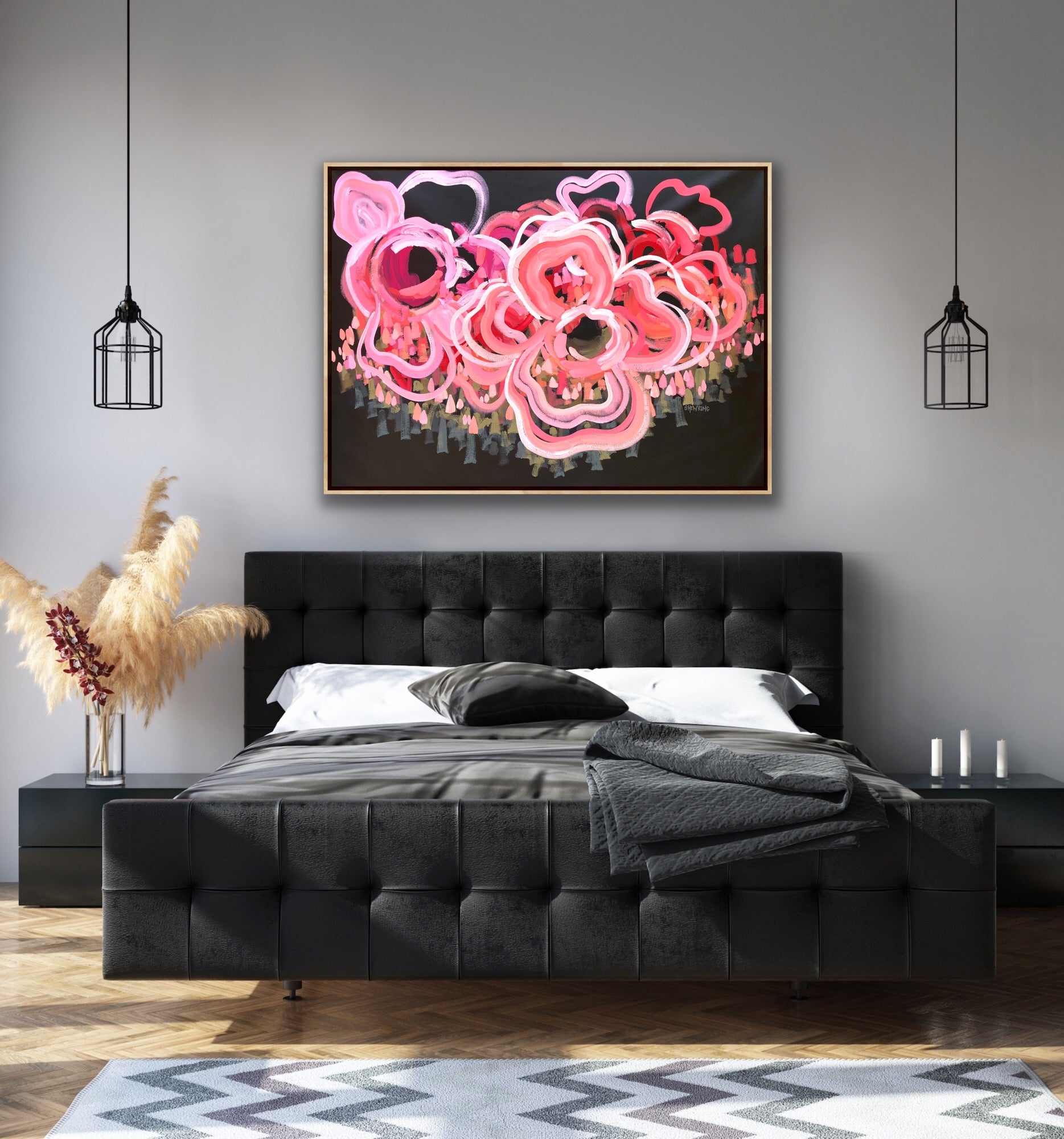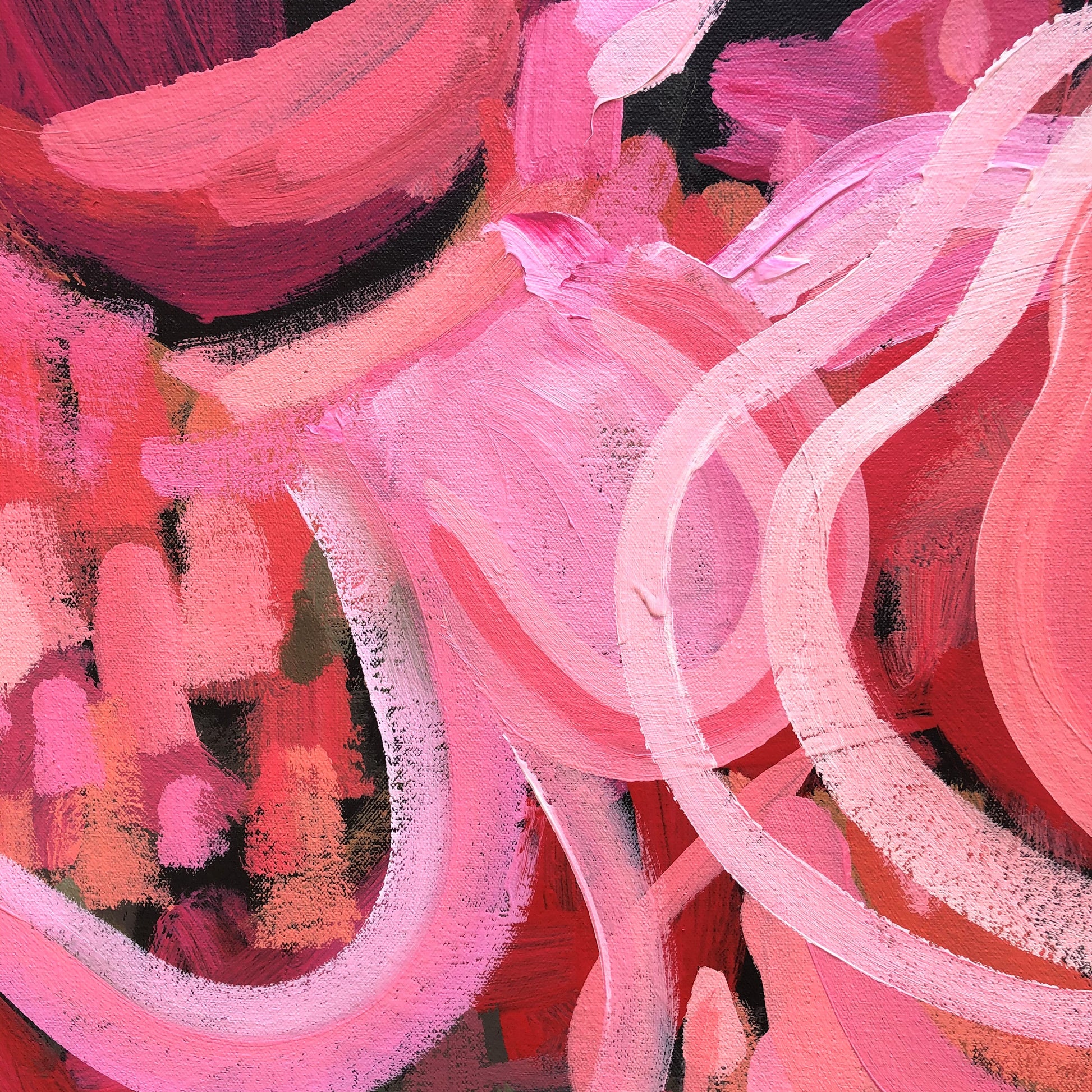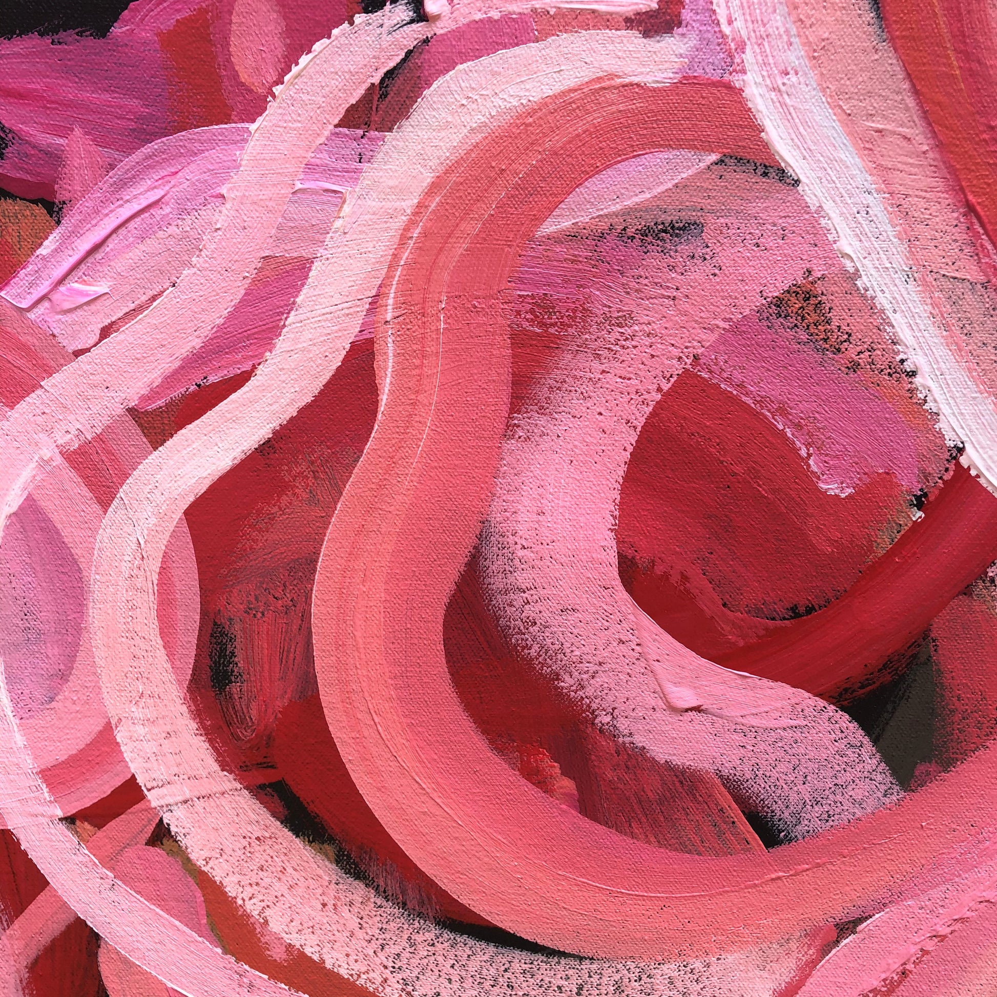 You're My Rock is a bright and bold flower abstract with the delicious colours of melons, strawberries and raspberries. This painting has expressive individual brushstrokes that bring it to life!